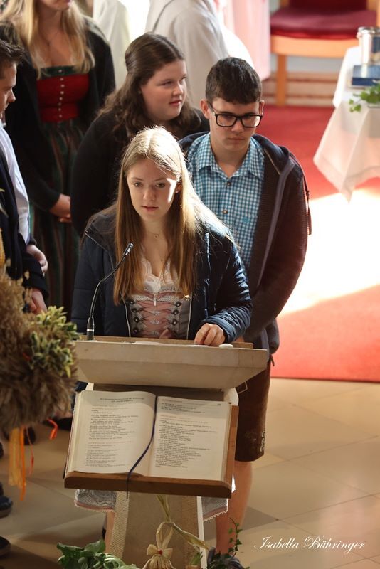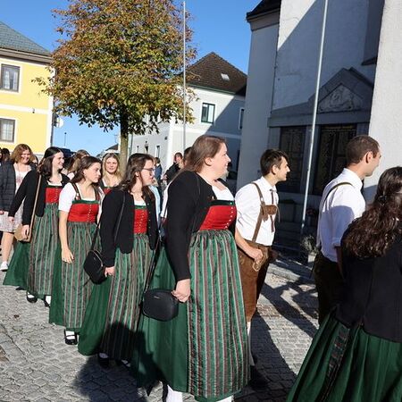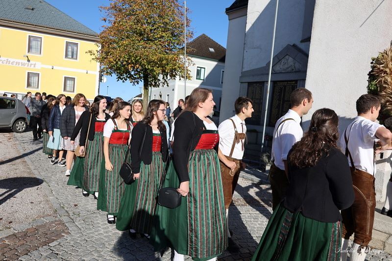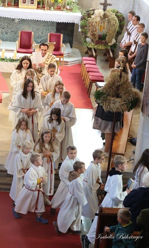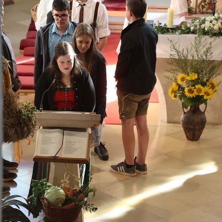 Nach feierlichem Einzug mit der Erntekrone wurde die Messe sehr feierlich von der Volkstanzgruppe und dem Bäuerinnenchor gestaltet.