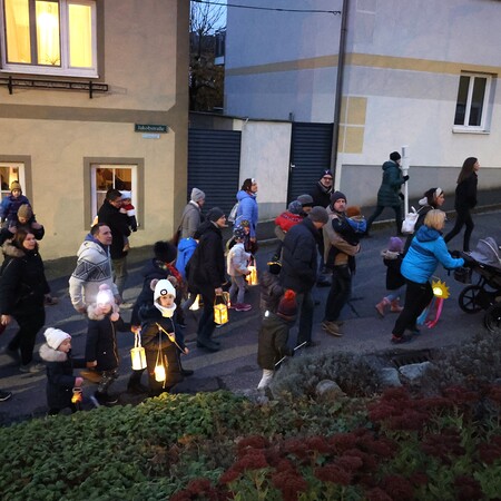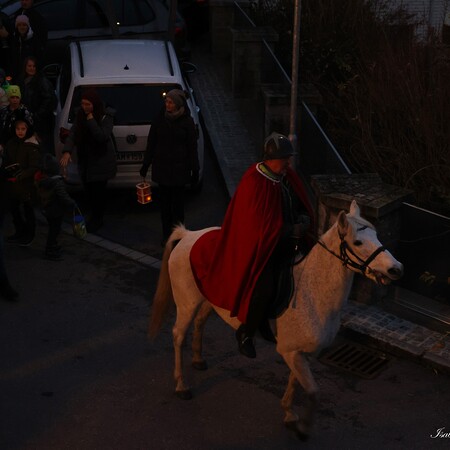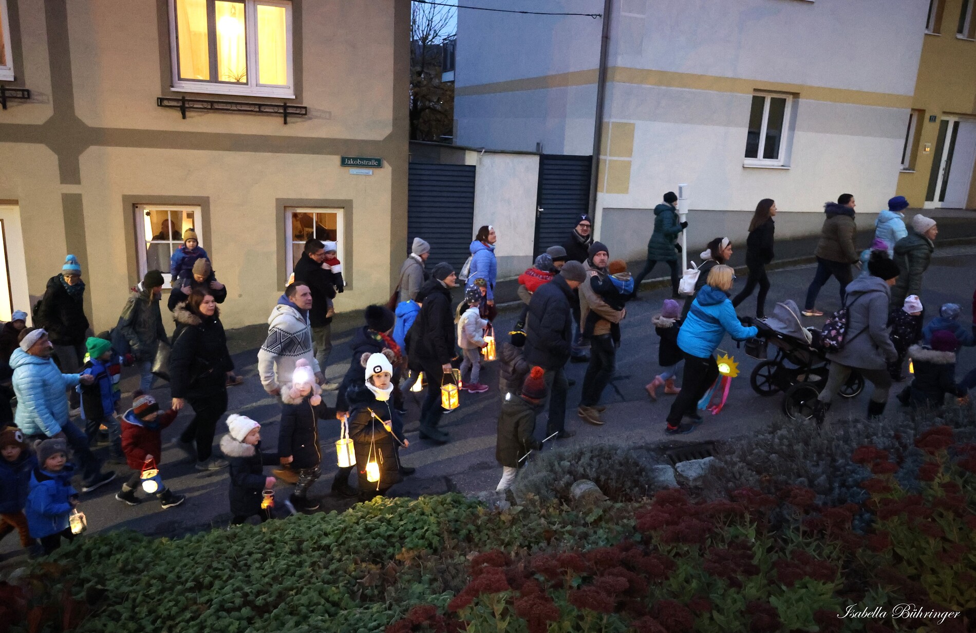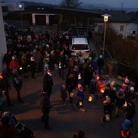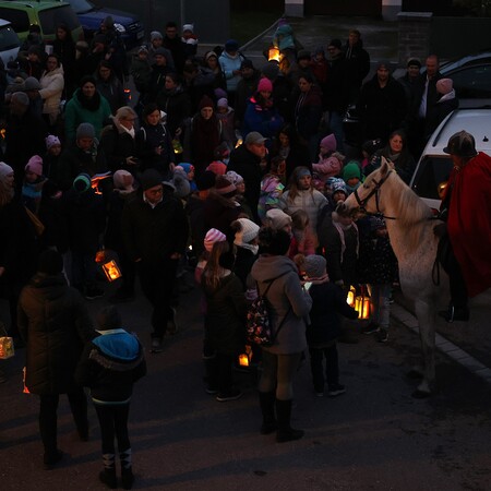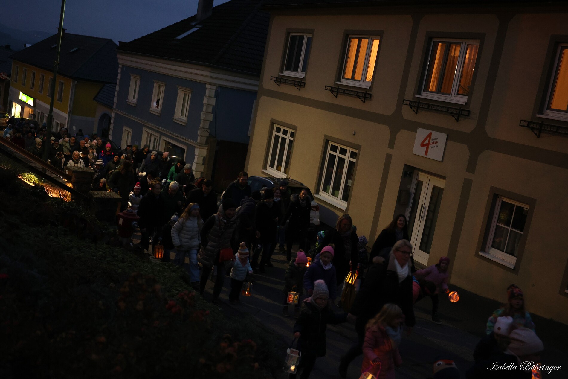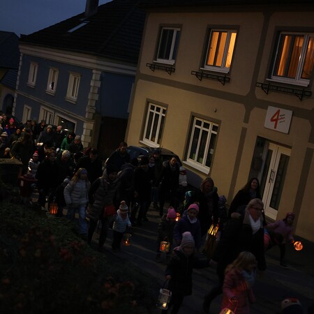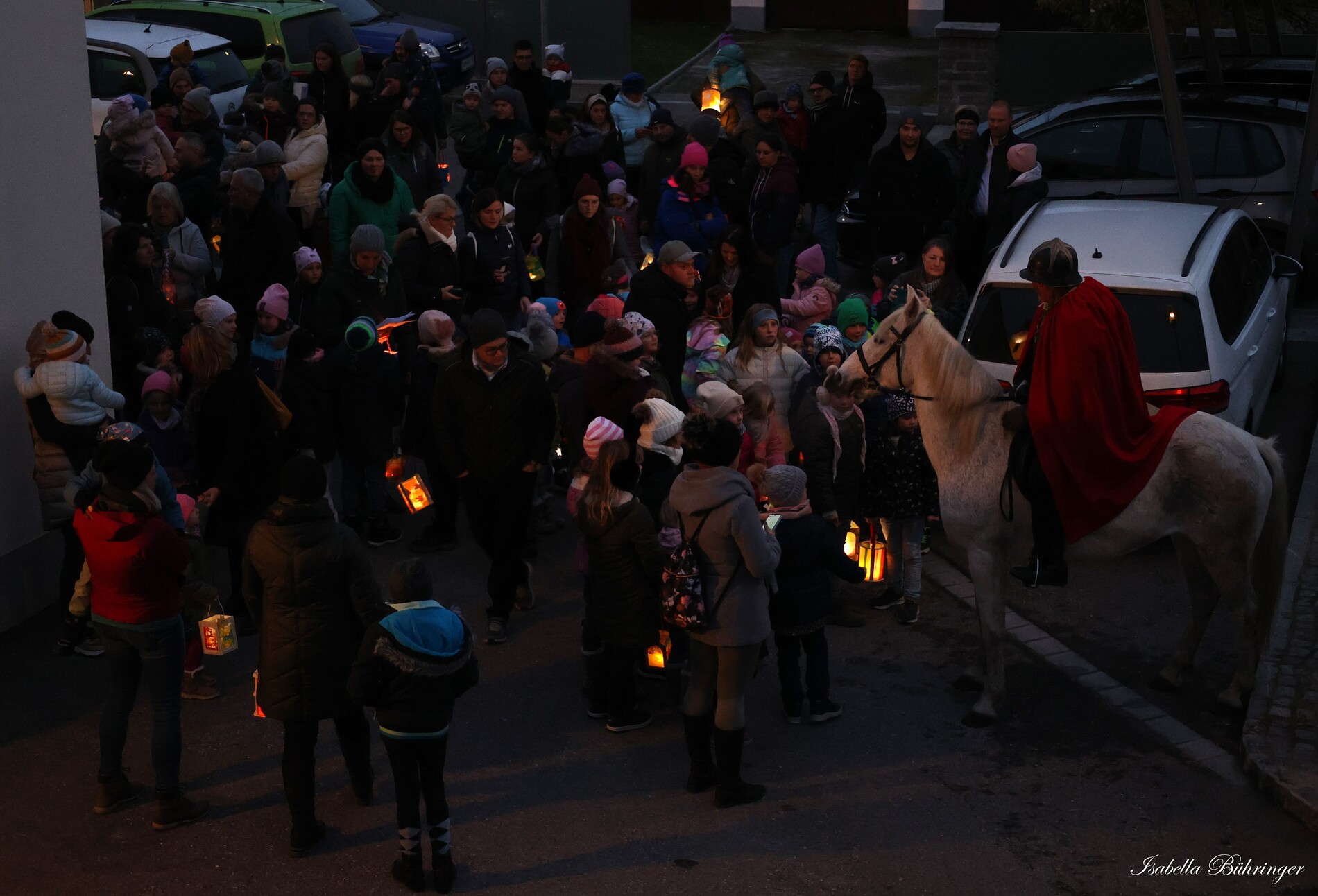 Es sind viele Neustadtler und auch Besucher von den Nachbarsgemeinden der Einladung gefolgt und zogen gemeinsam mit ihren Laternen und mit dem Hl. Martin am Pferd zur Pfarrkirche.