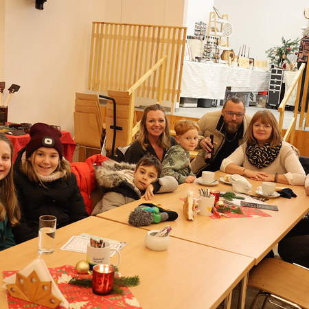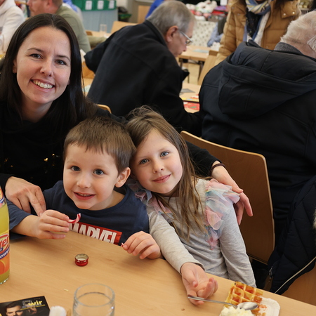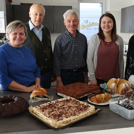 Aufwärmen konnte man sich im Jakobsaal bei Kaffee, Tee und Mehlspeisen. Die Ministranten backten Waffeln.