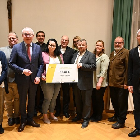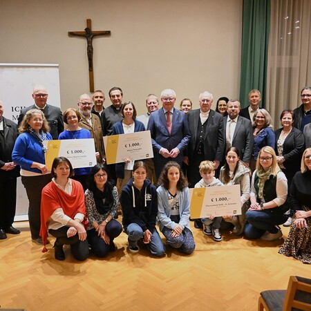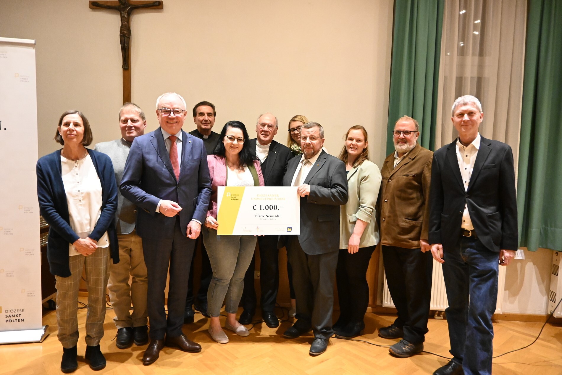 Die Gewinnerprojekte der Diözese St. Pölten wurden mit einer kurzen Präsentation vorgestellt, bevor die Pfarren von Bischof Schwarz, LH-Stellvertreter Stephan Pernkopf und Axel Isenbart ihre Urkunde entgegennahmen.