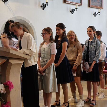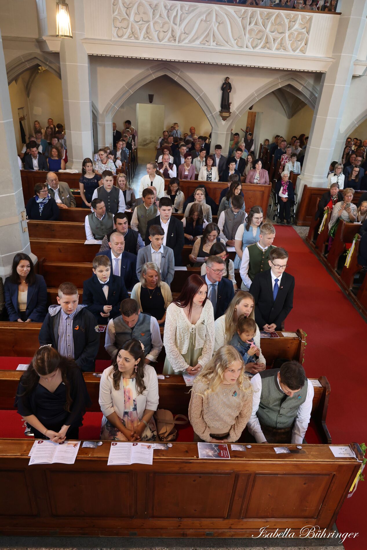 Nach einem feierlichen Einzug mit der Musikkapelle wurde die Messe von den Firmlingen gestaltet.