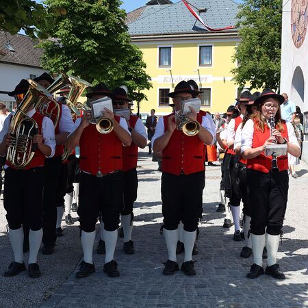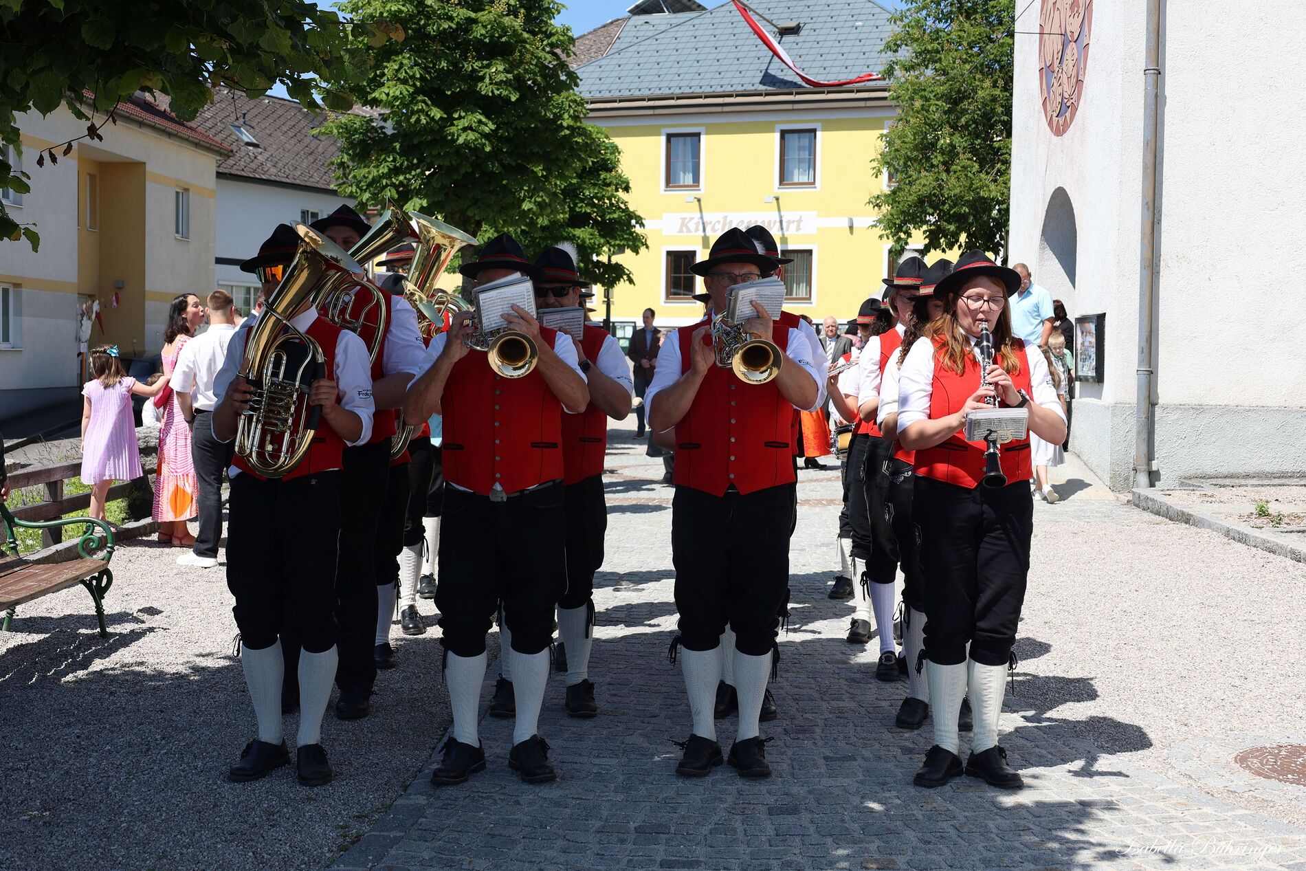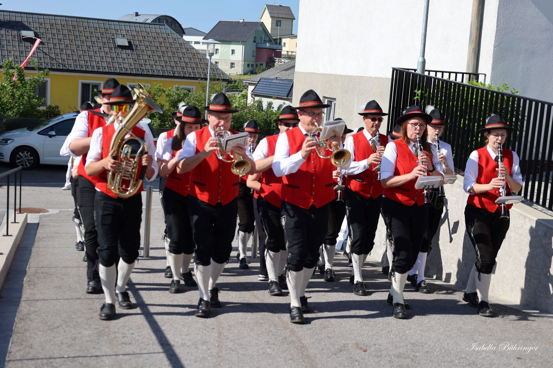 Nach der Hl. Messe wurde im Jakobsaal zur Agape eingeladen, bei der die Musikkapelle Frohsinn musikalisch durch den Vormittag begleitete.
