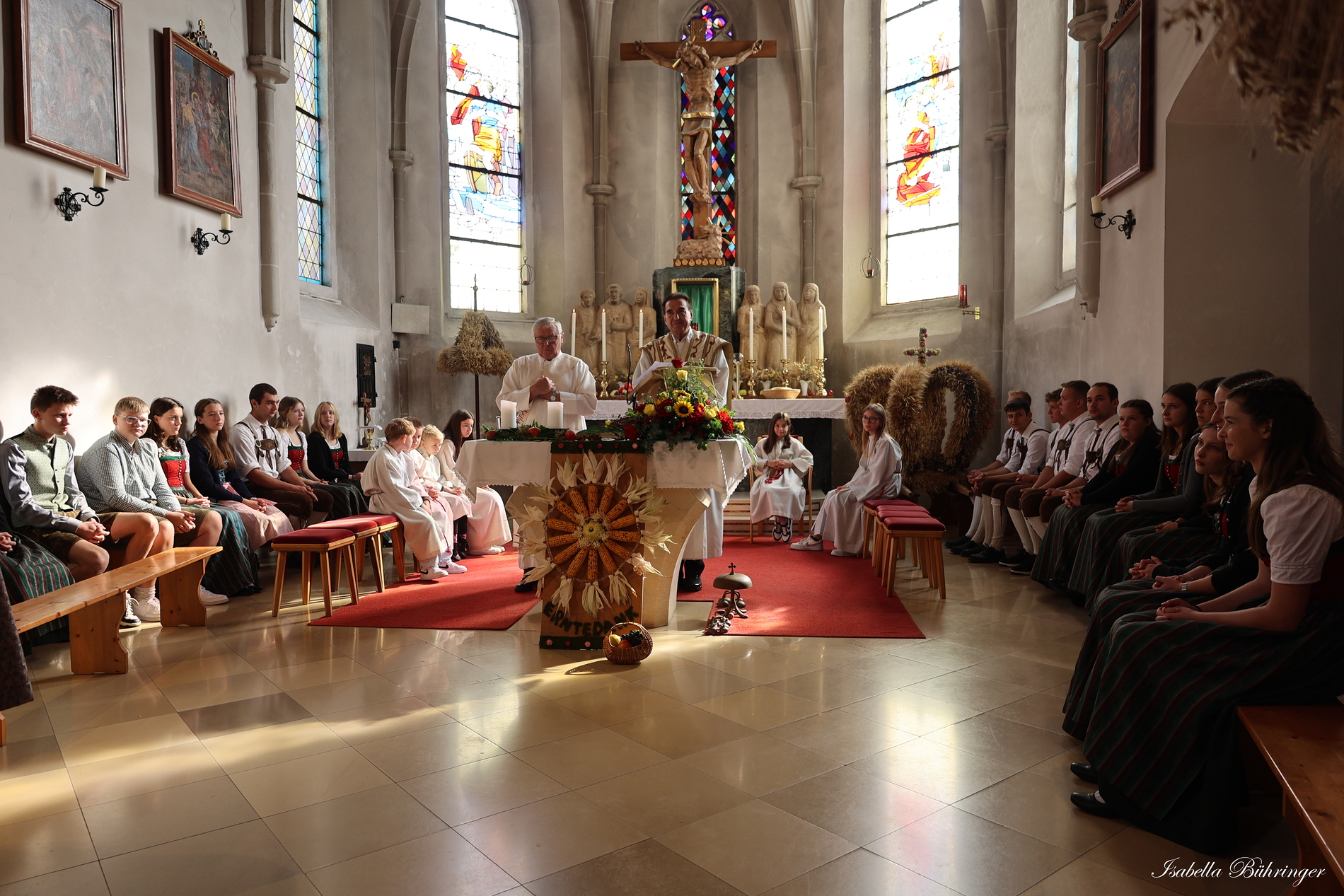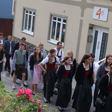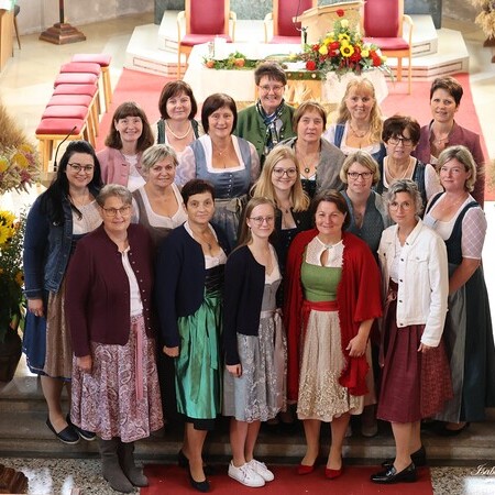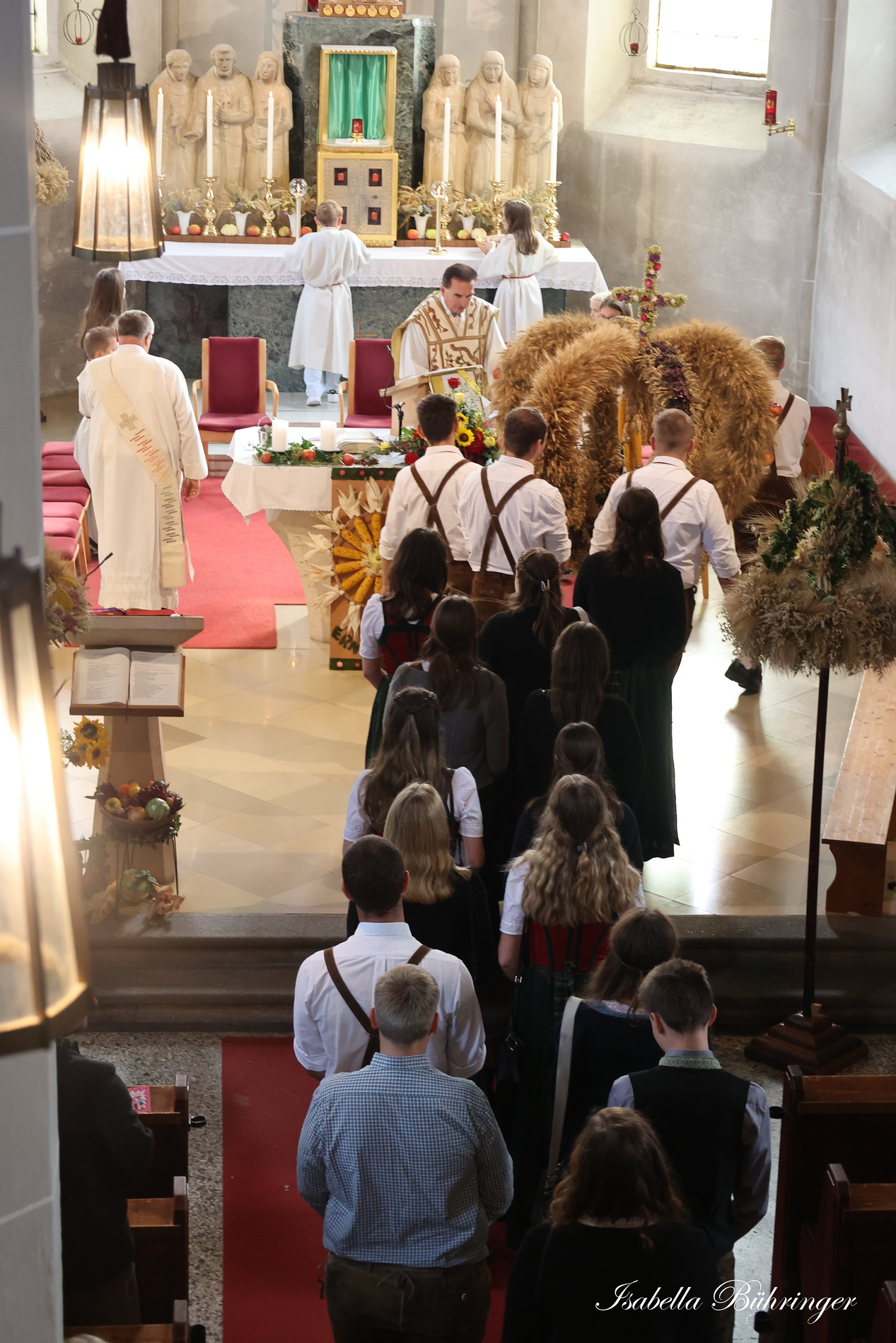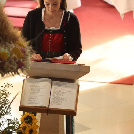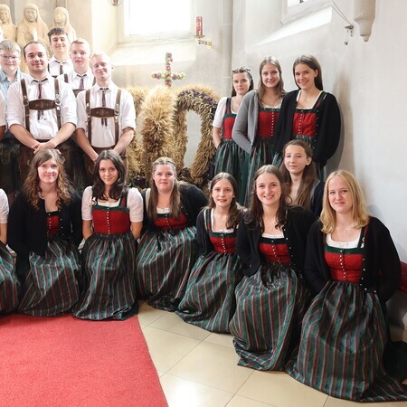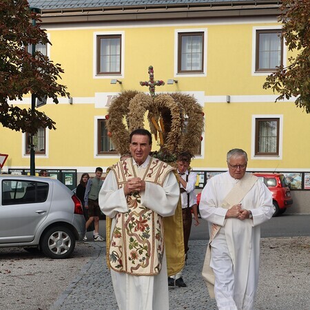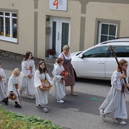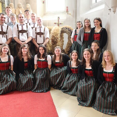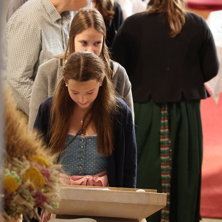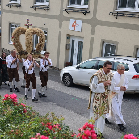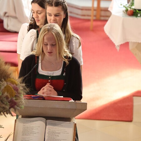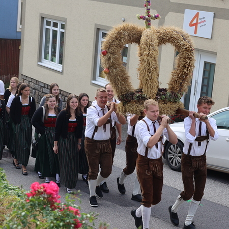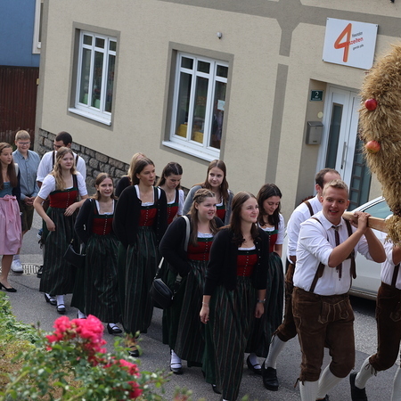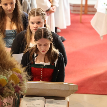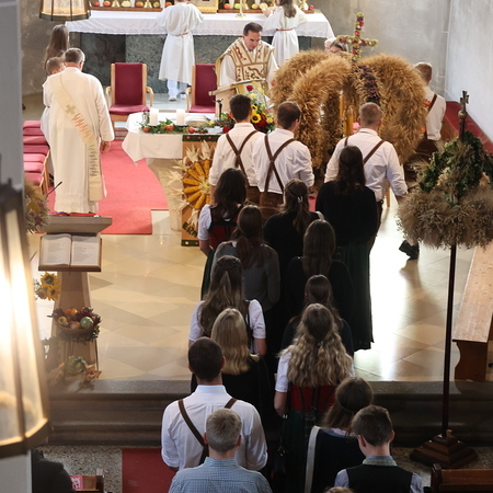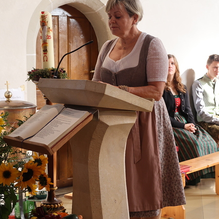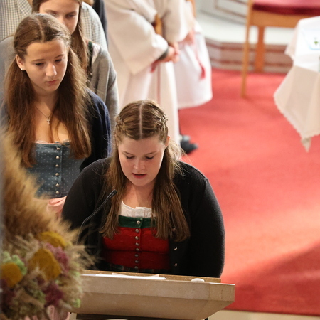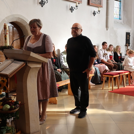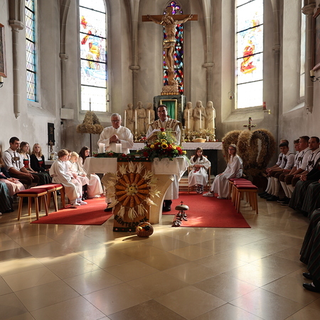 Nach feierlichem Einzug mit der Erntekrone wurde die Messe sehr feierlich von der Volkstanzgruppe und dem Bäuerinnenchor gestaltet.