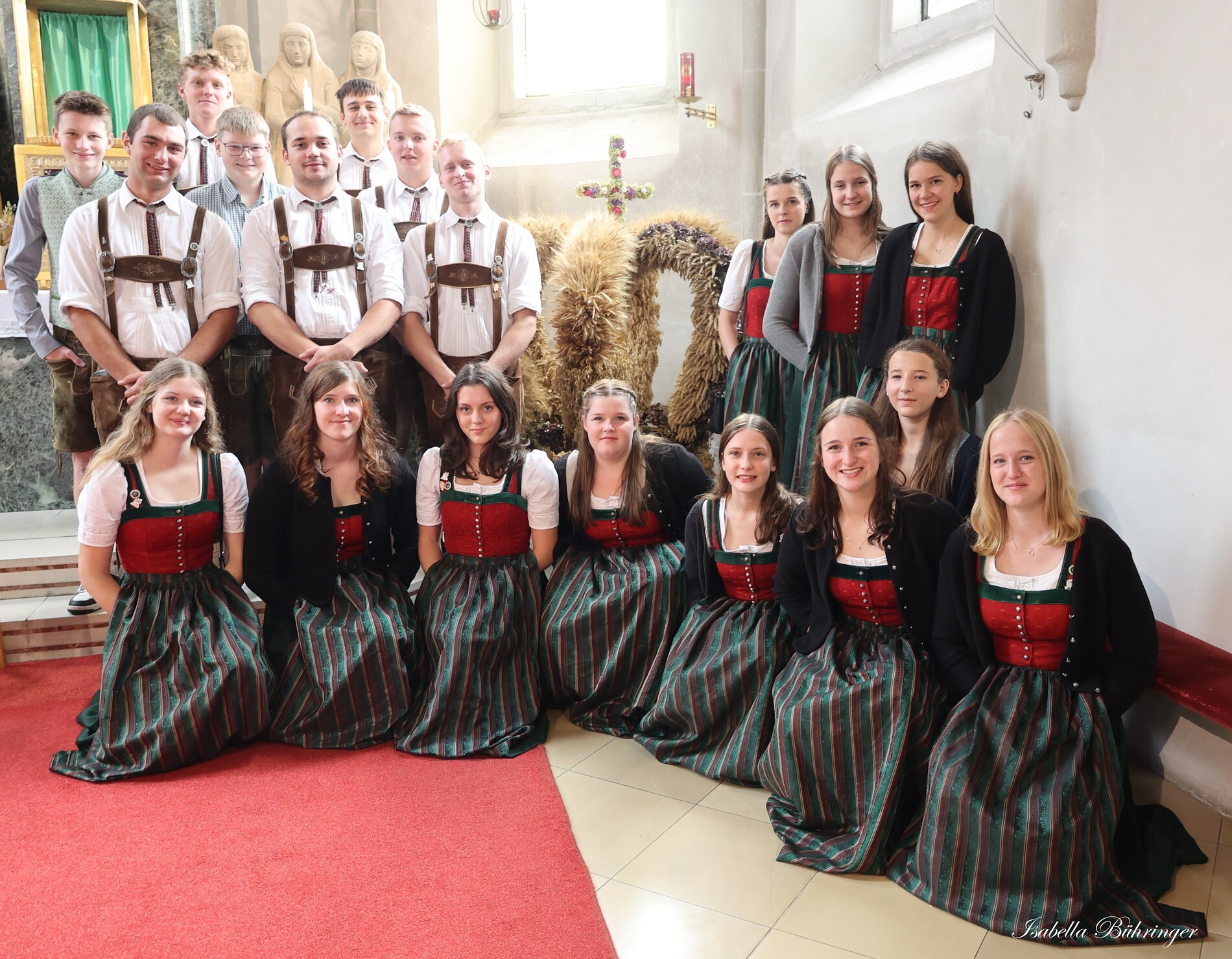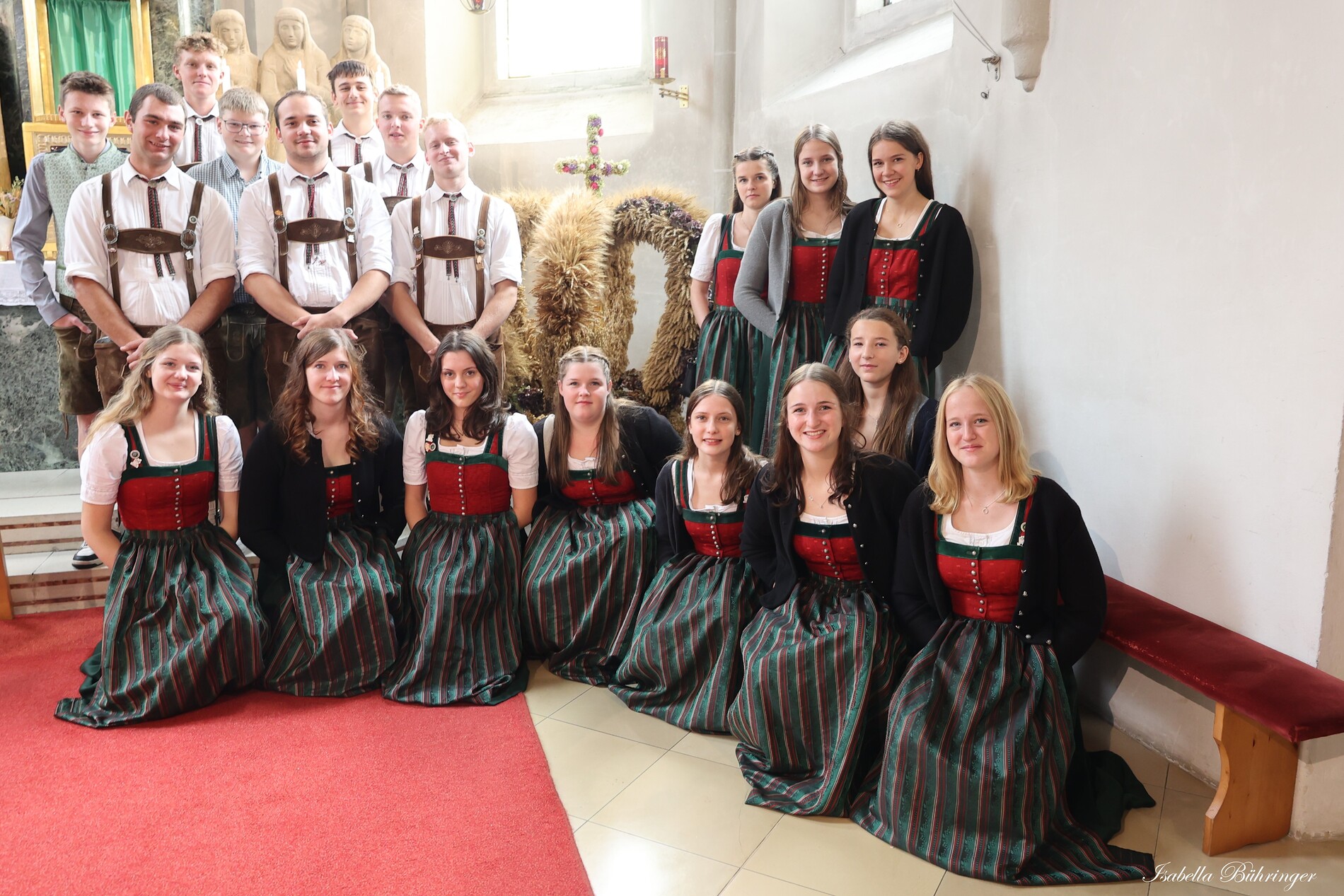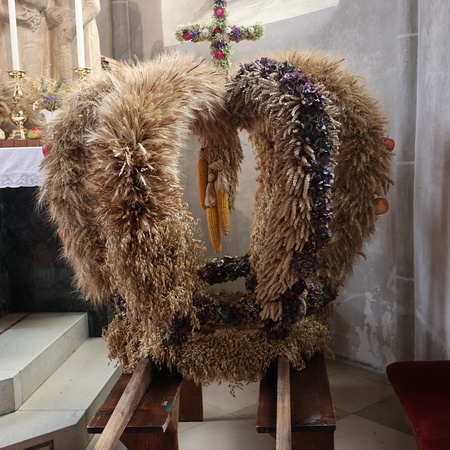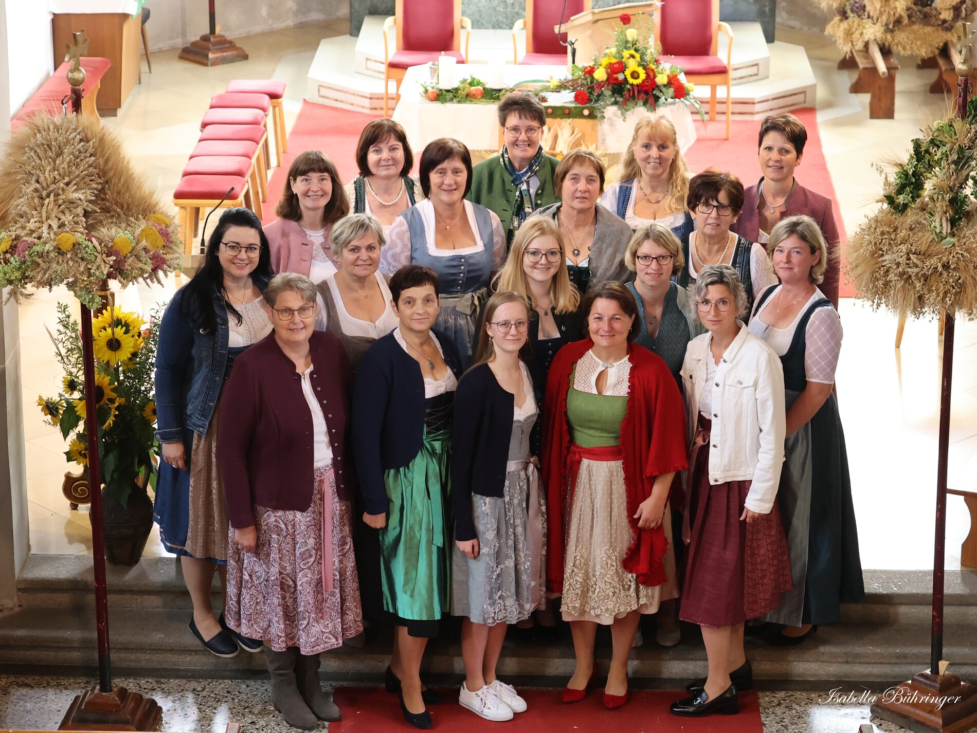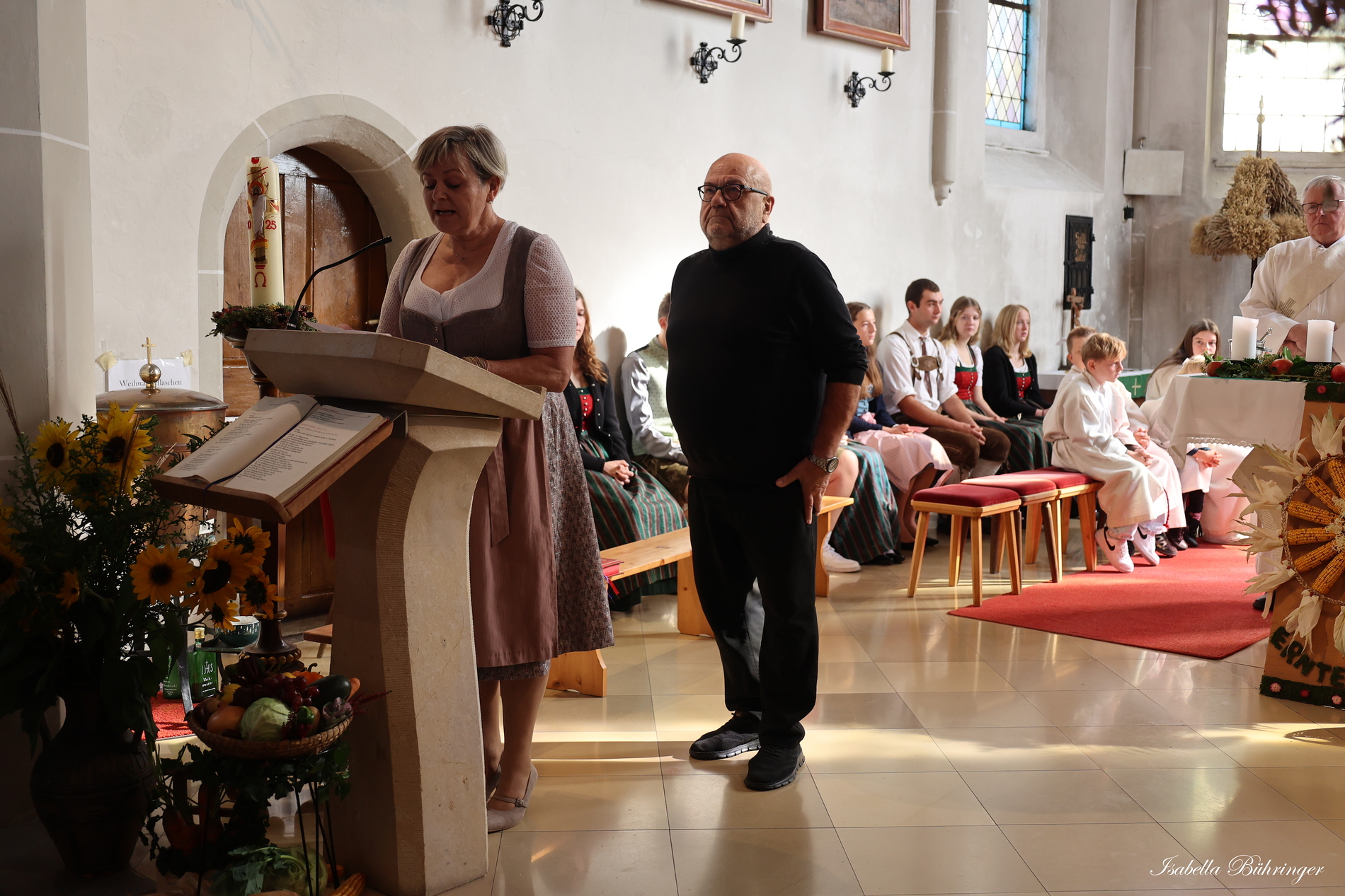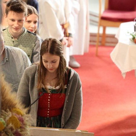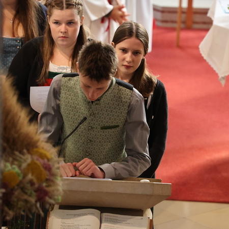 Nach feierlichem Einzug mit der Erntekrone wurde die Messe sehr feierlich von der Volkstanzgruppe und dem Bäuerinnenchor gestaltet.