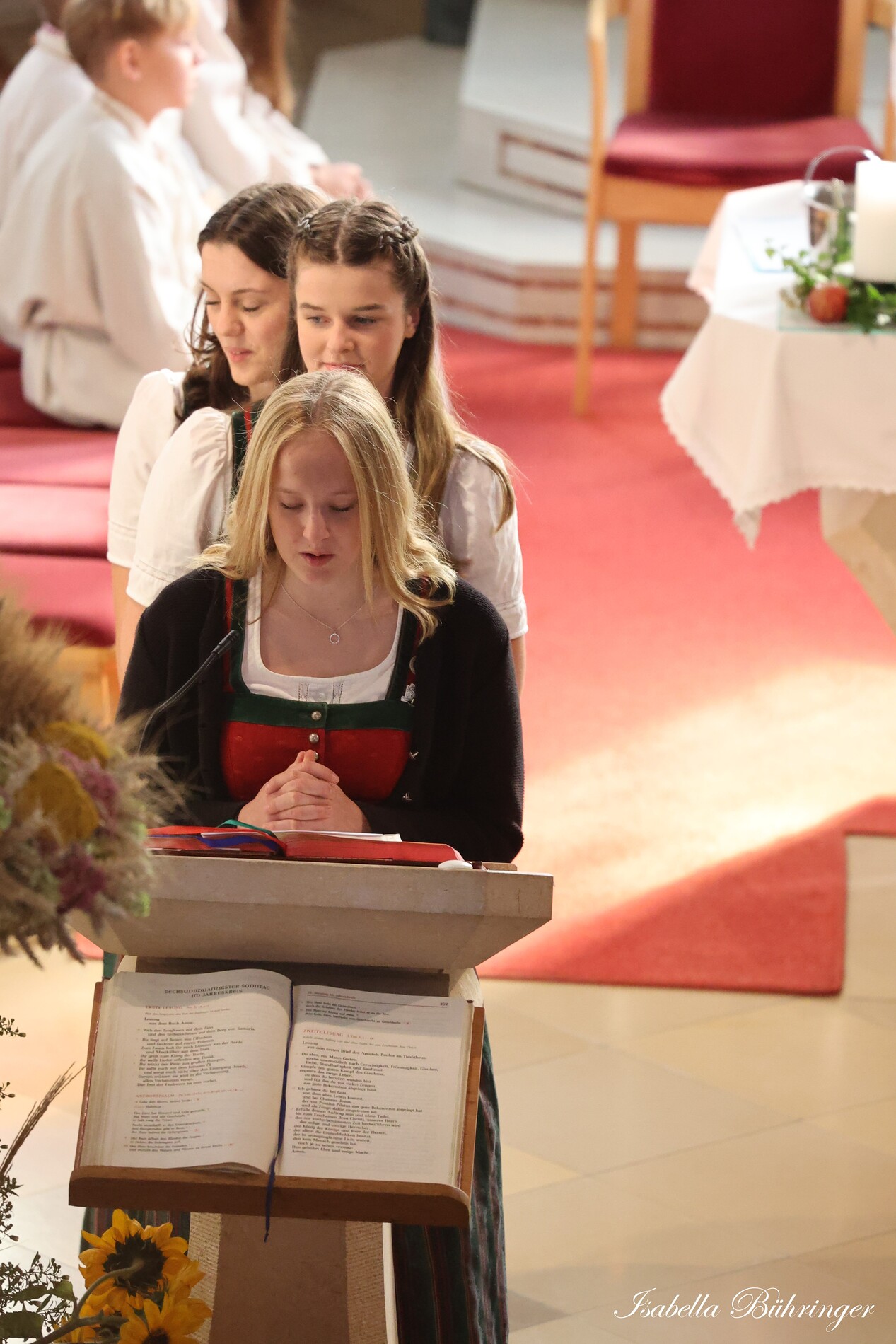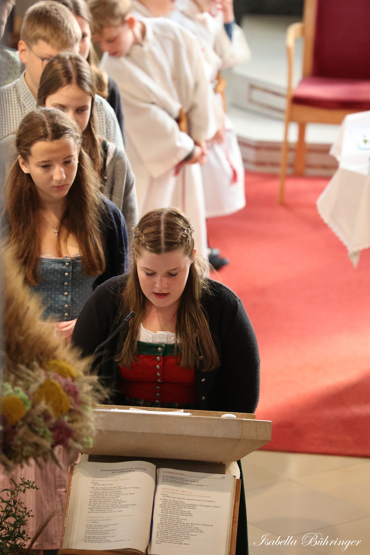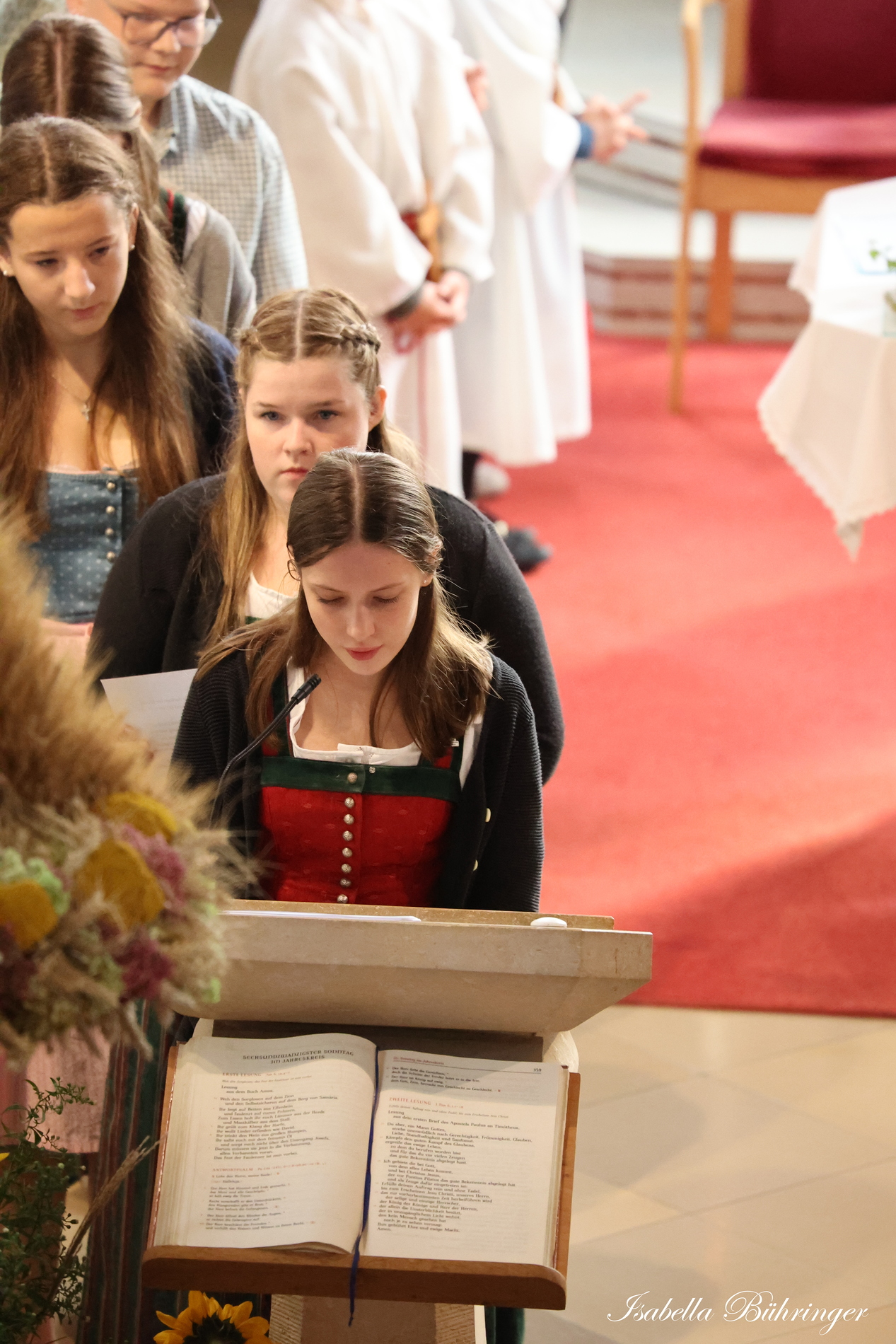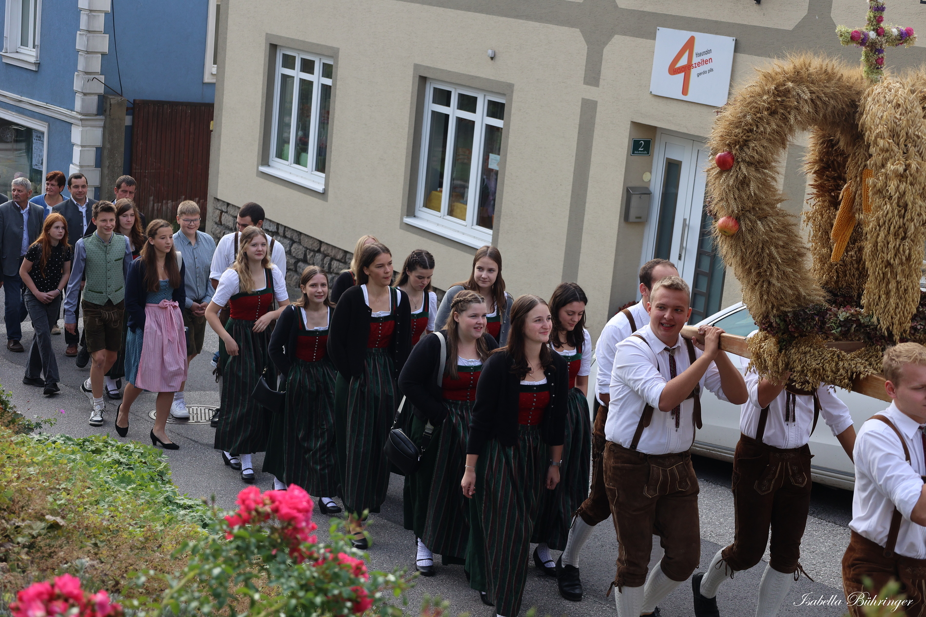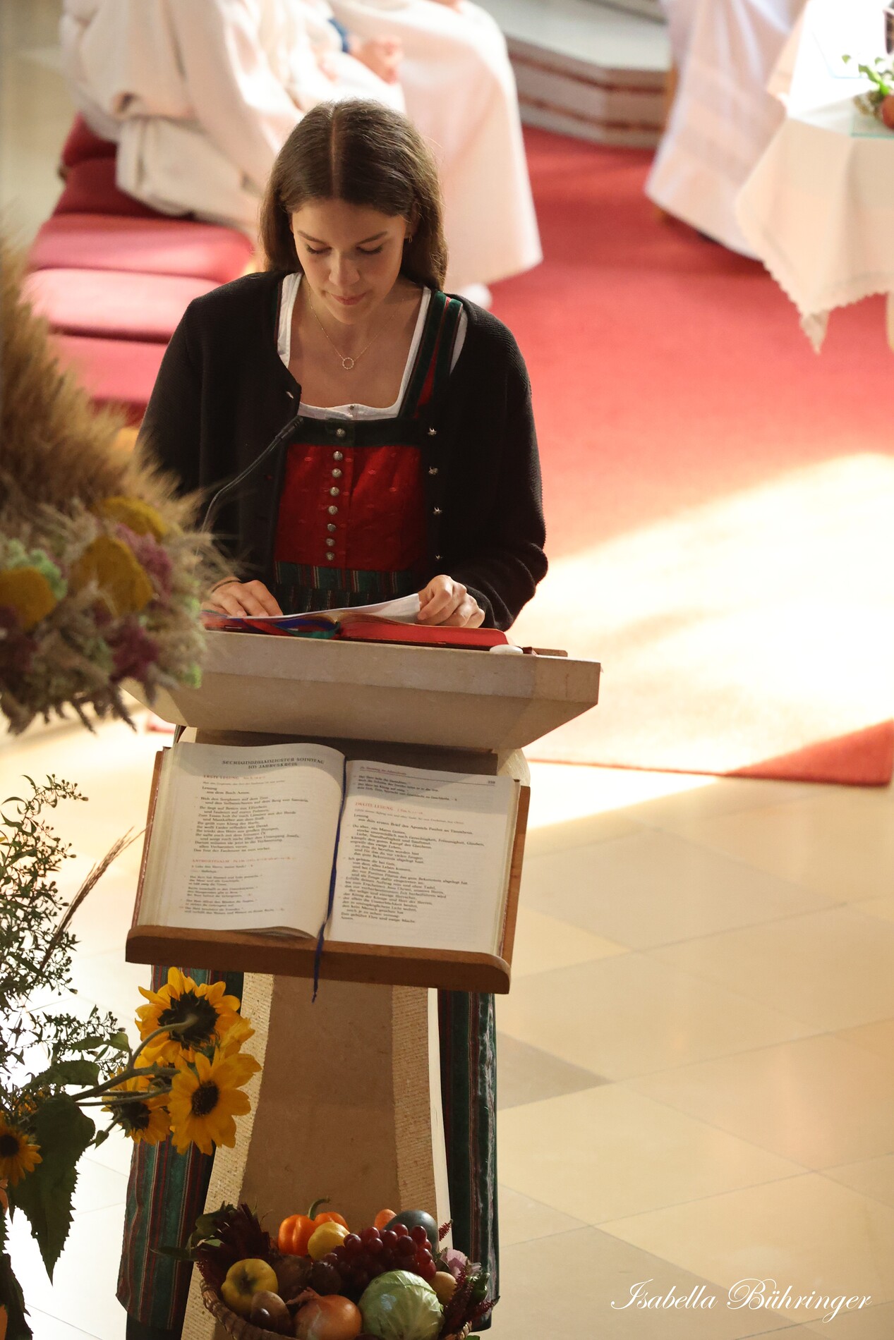 Nach feierlichem Einzug mit der Erntekrone wurde die Messe sehr feierlich von der Volkstanzgruppe und dem Bäuerinnenchor gestaltet.