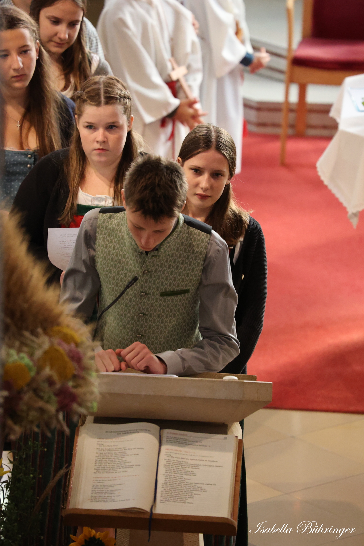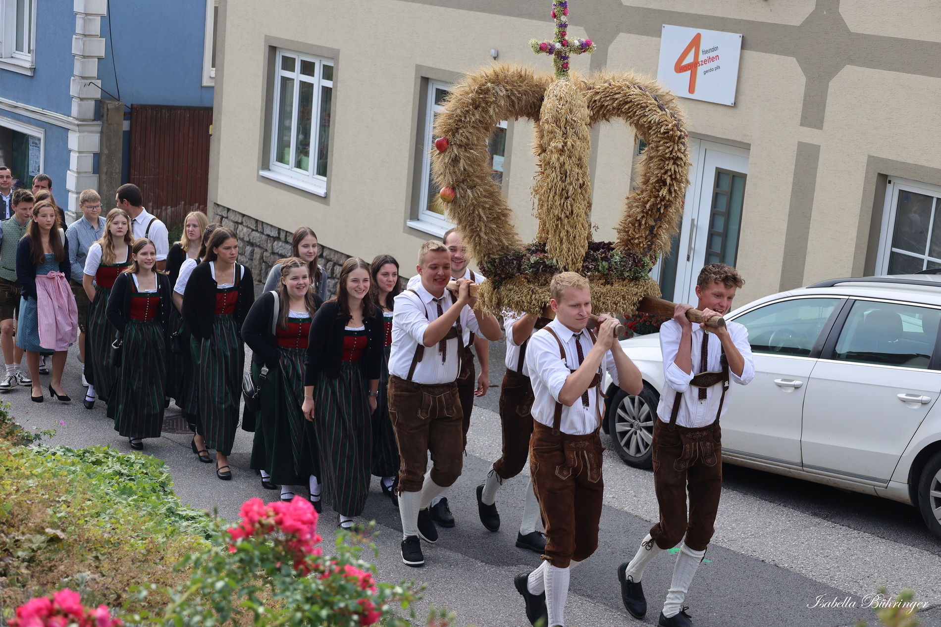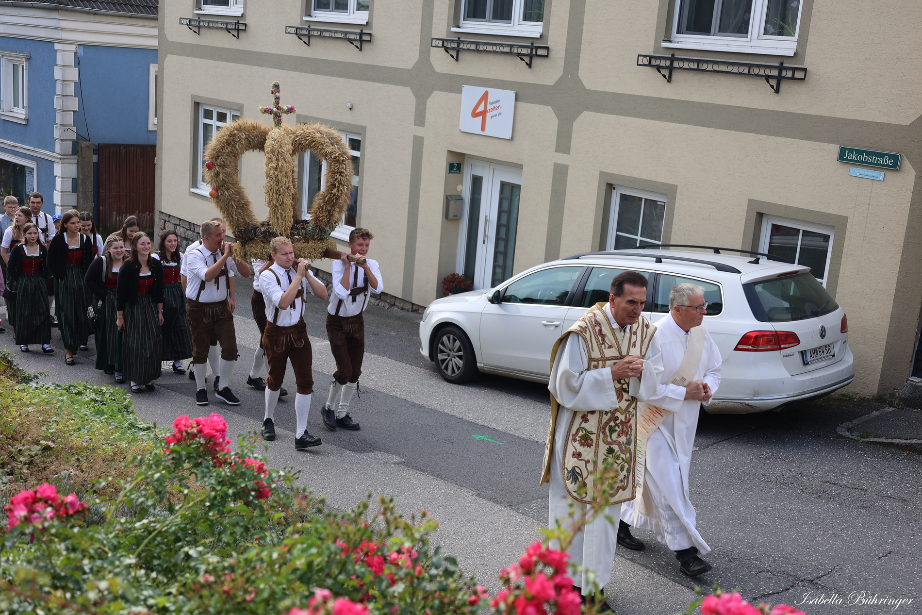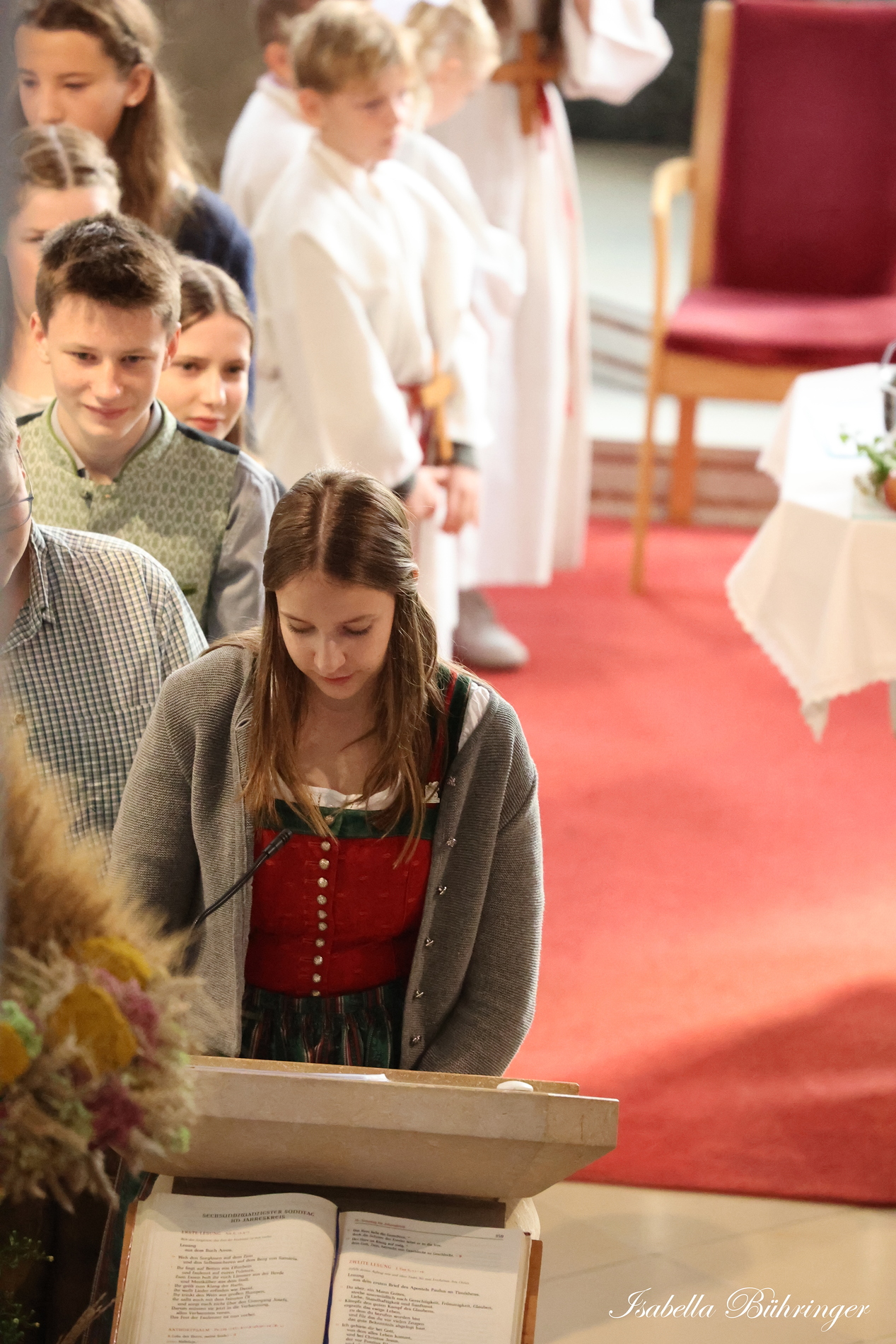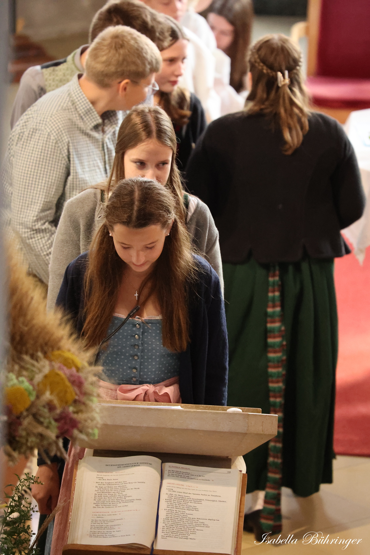 Nach feierlichem Einzug mit der Erntekrone wurde die Messe sehr feierlich von der Volkstanzgruppe und dem Bäuerinnenchor gestaltet.
