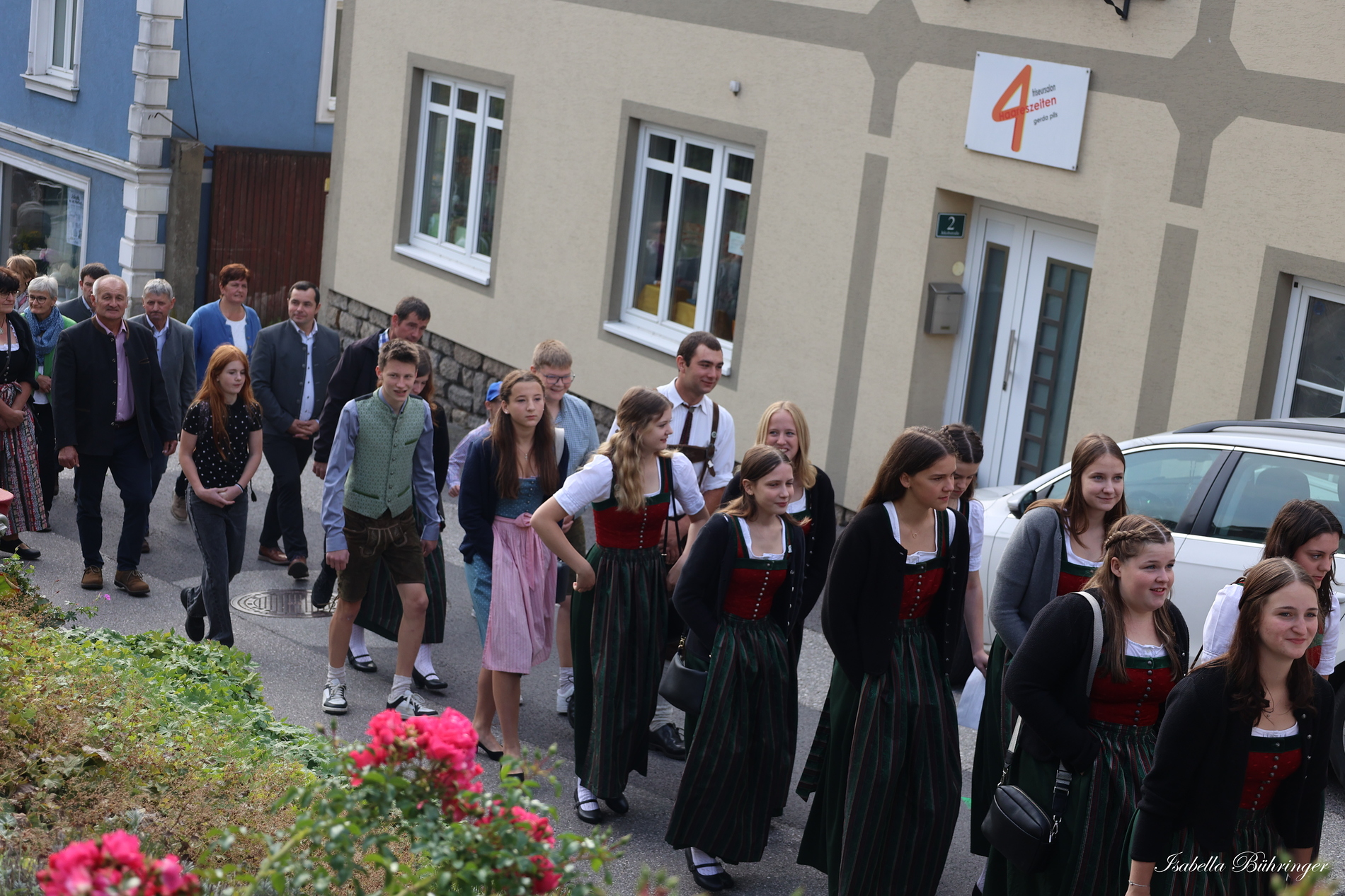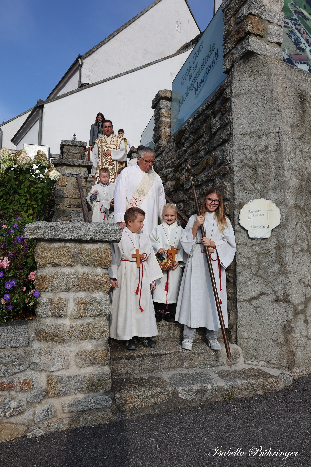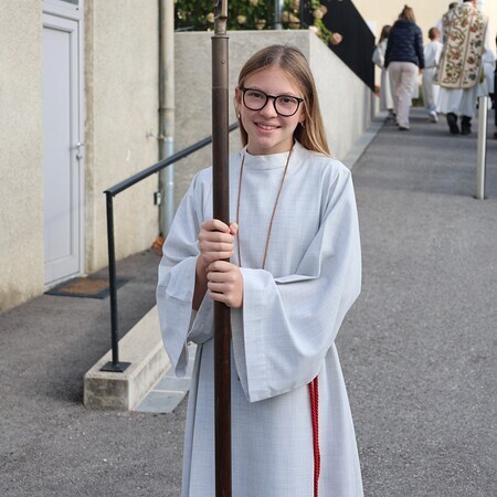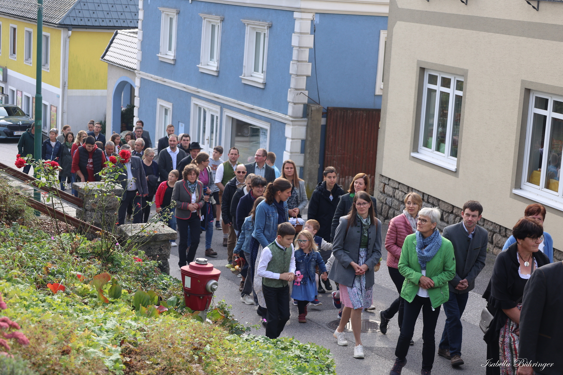 Viele Gläubige sind bei schönem Wetter zu Fuß zur Kirche gegangen.
