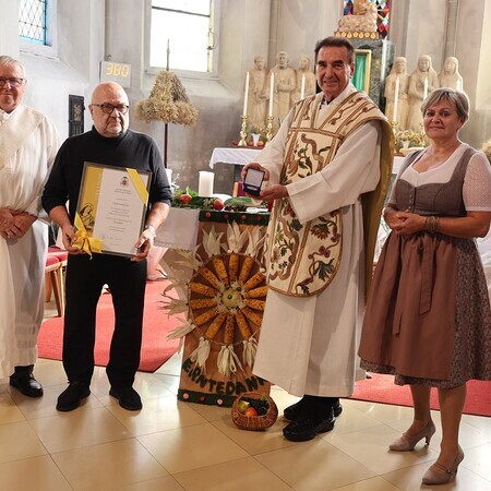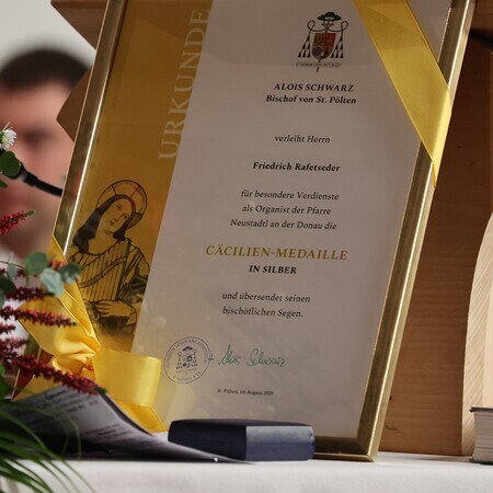 Nach der Kommunion wurde Herrn Friedrich Rafetseder die Cäcilien-Medaille in Silber für besondere Verdienste als Organist verliehen.