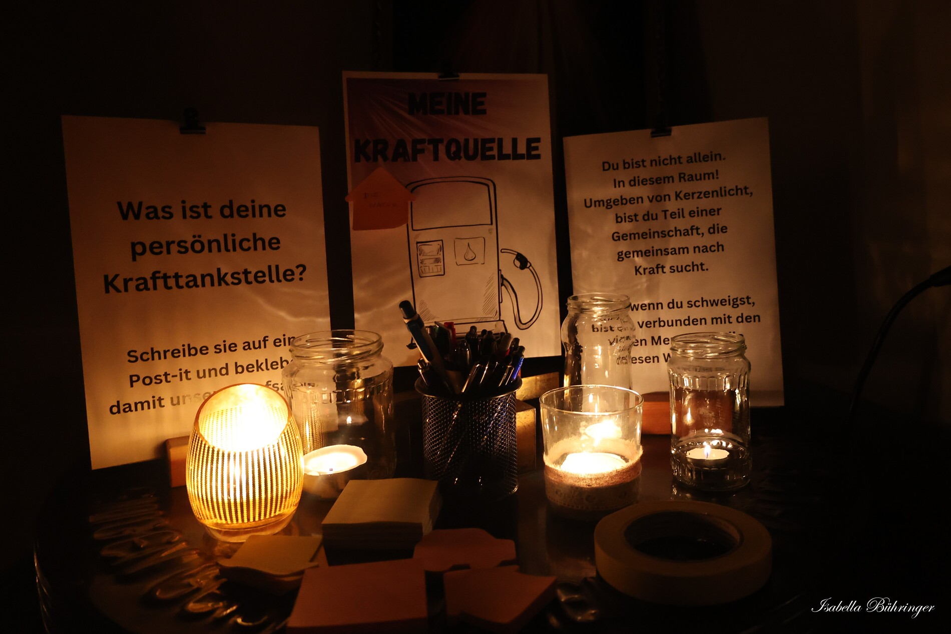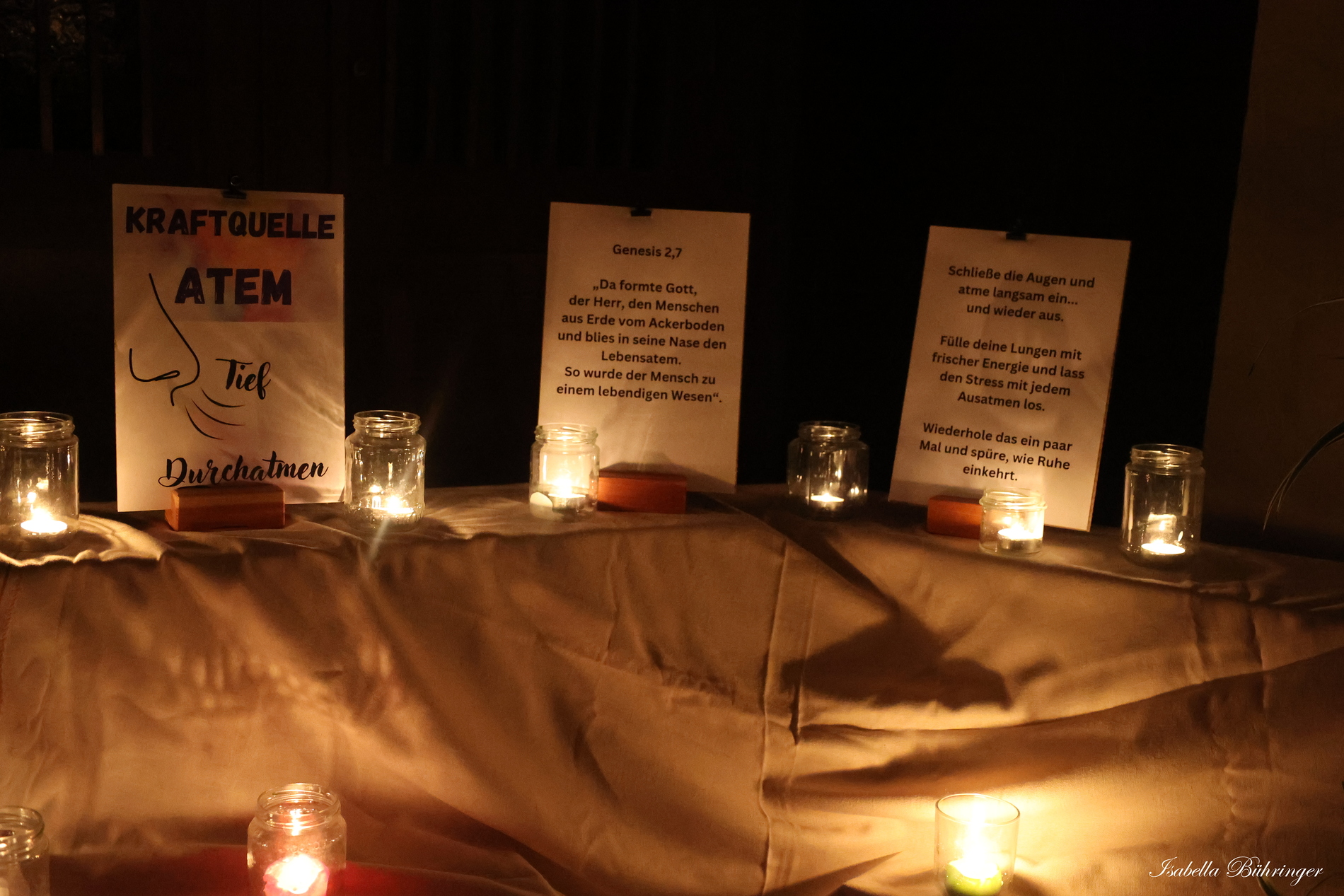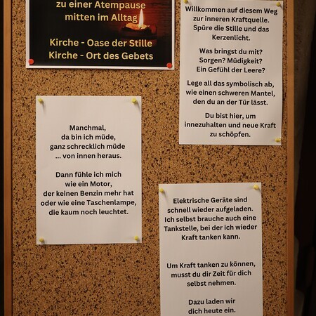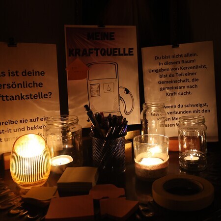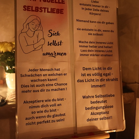 Viele Kerzen, Gedanken, Texte und beruhigende Hintergrundmusik luden zum Kraft tanken und zum Abschalten vom Alltag ein.
