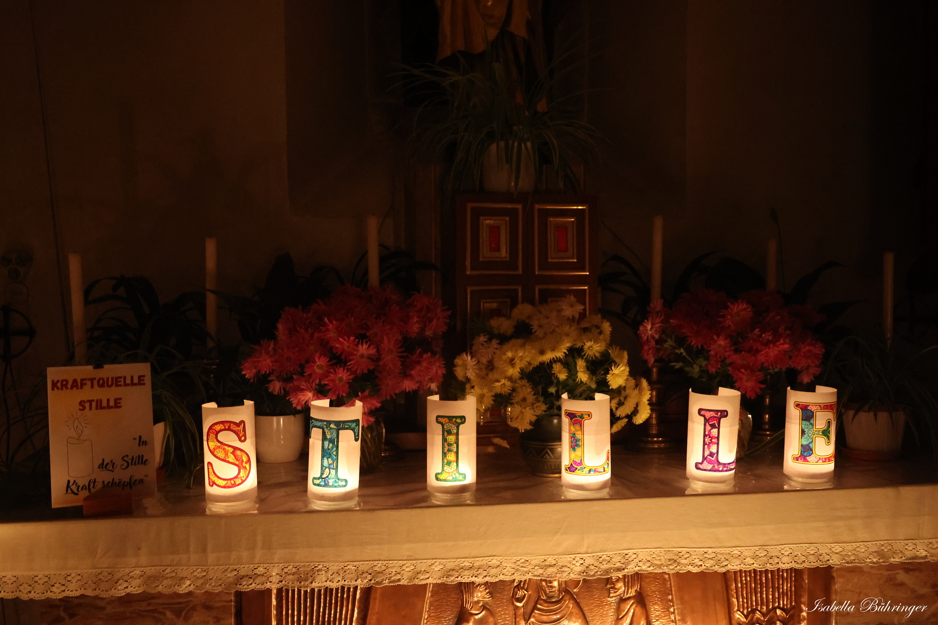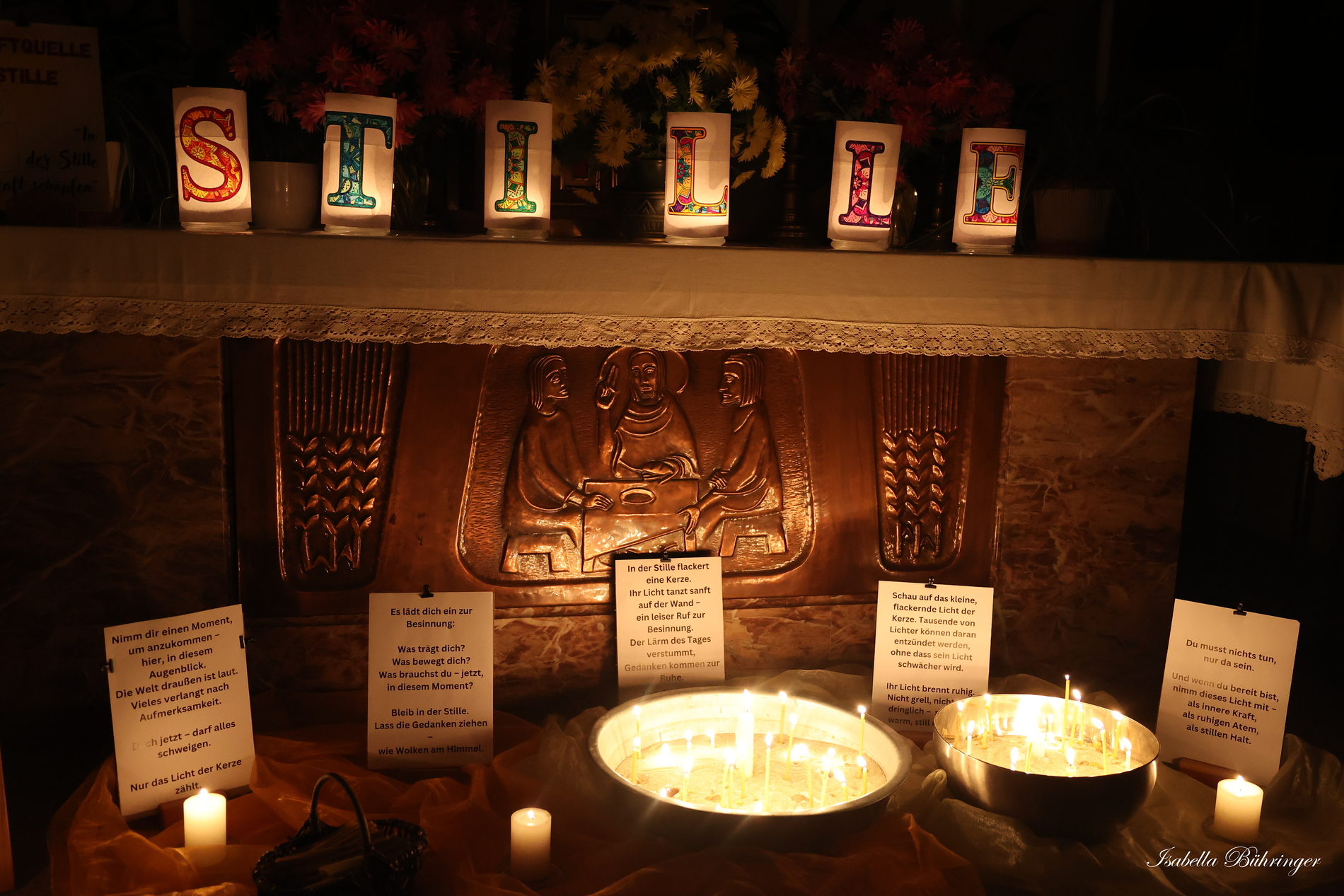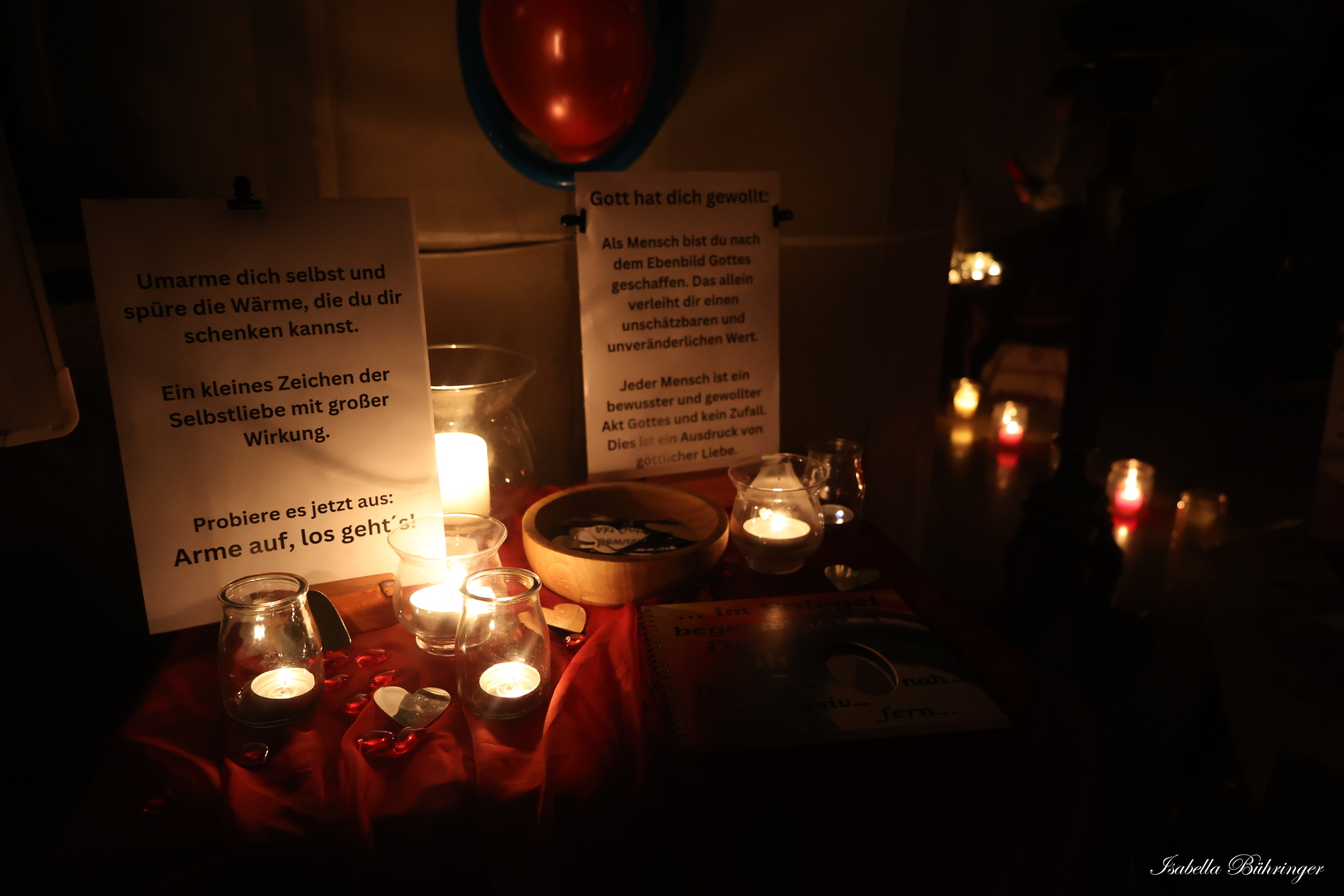 Viele Kerzen, Gedanken, Texte und beruhigende Hintergrundmusik luden zum Kraft tanken und zum Abschalten vom Alltag ein.