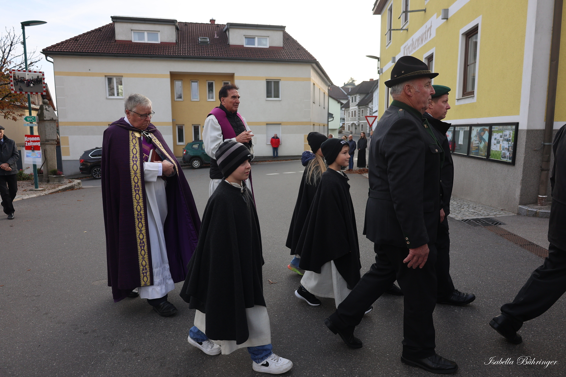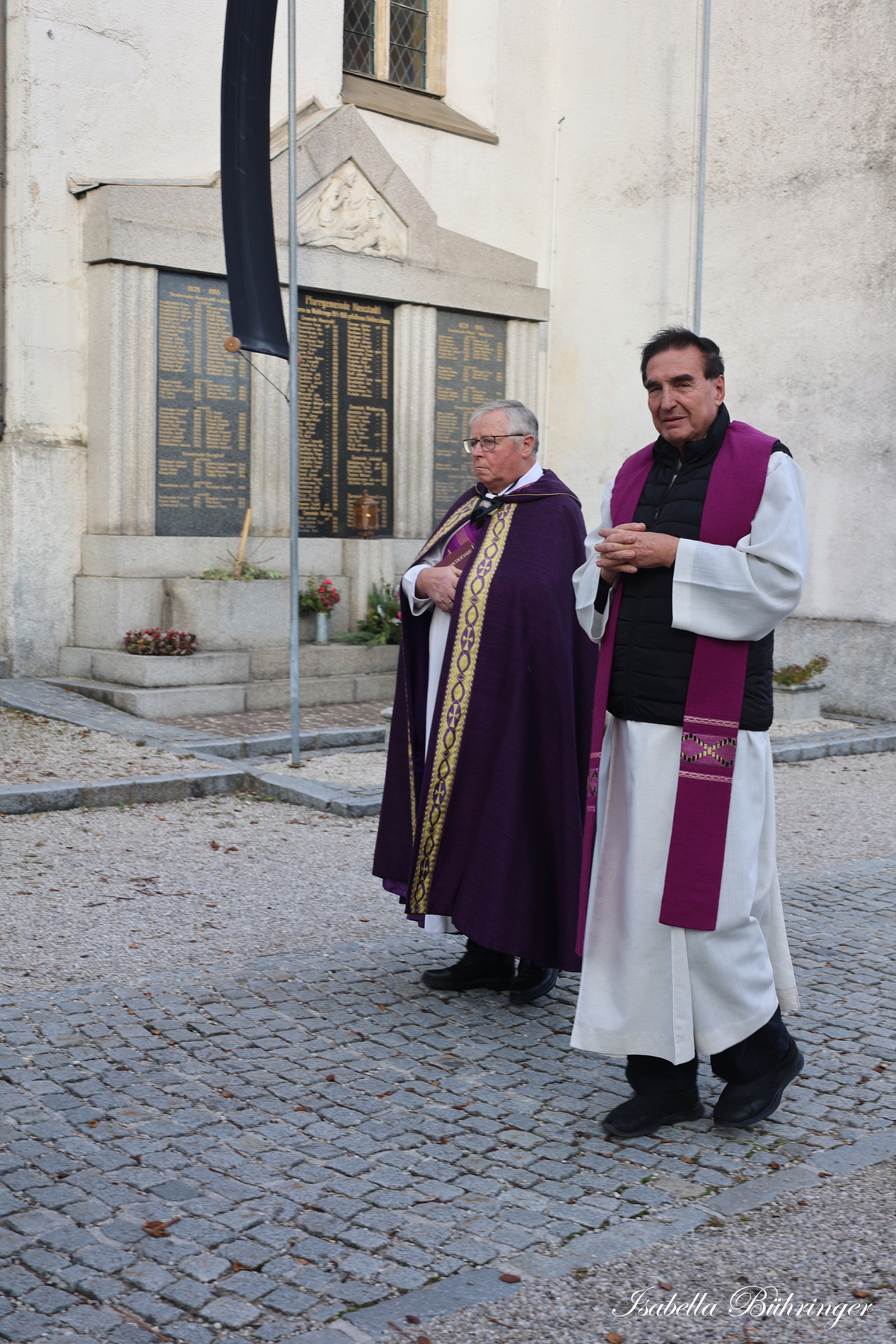 Im Anschluss an die Messe gingen die Gläubigen gemeinsam mit ÖKB und dem Musikverein Frohsinn zum Friedhof, um der Verstorbenen zu gedenken und die Gräber zu segnen.