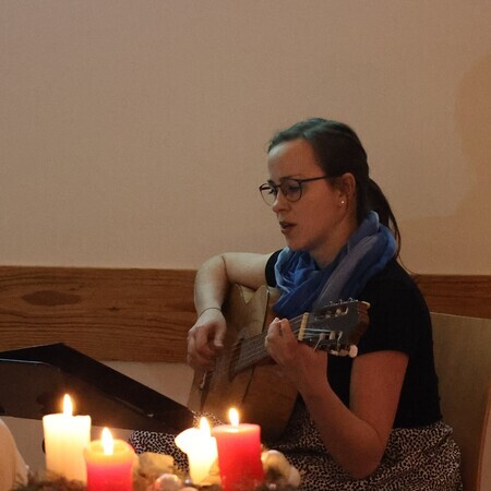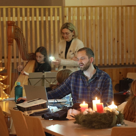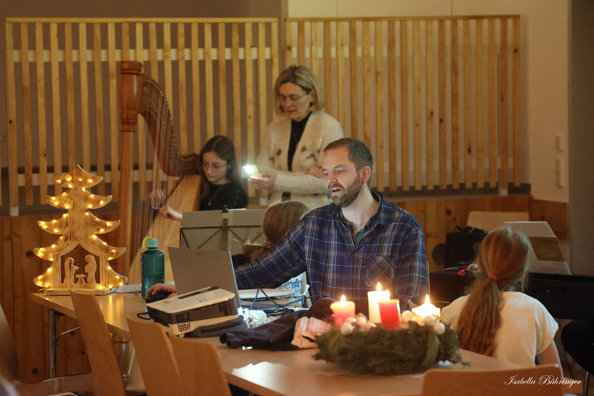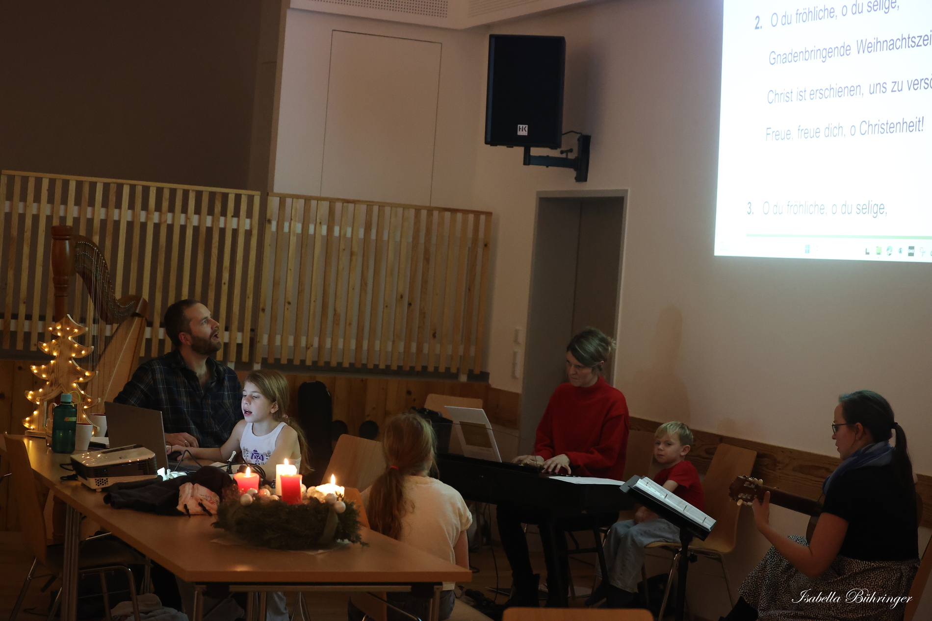 Mit Gitarre, Klavier und Harfe im Schlepptau wurde zwei Stunden lang musiziert und gesungen. Neben bekannten traditionellen Liedern war auch für manche Neues dabei.