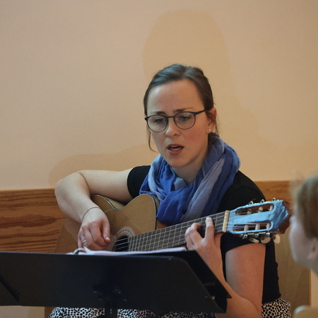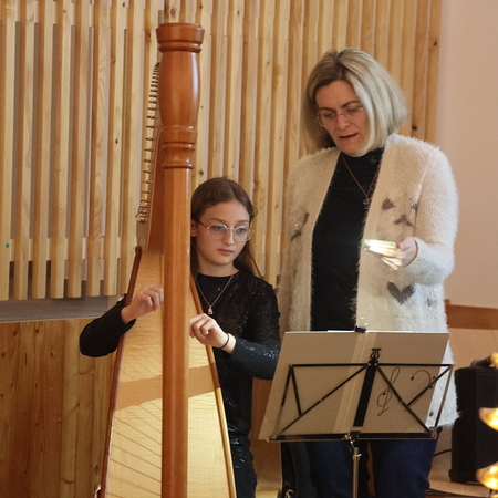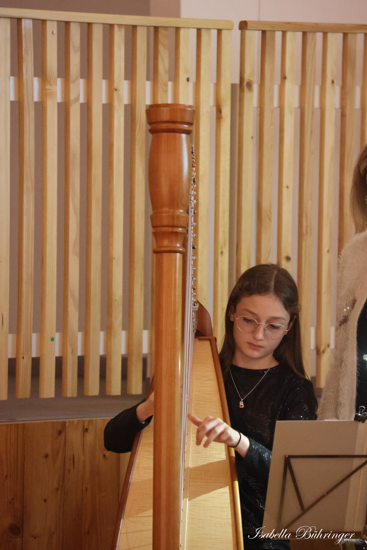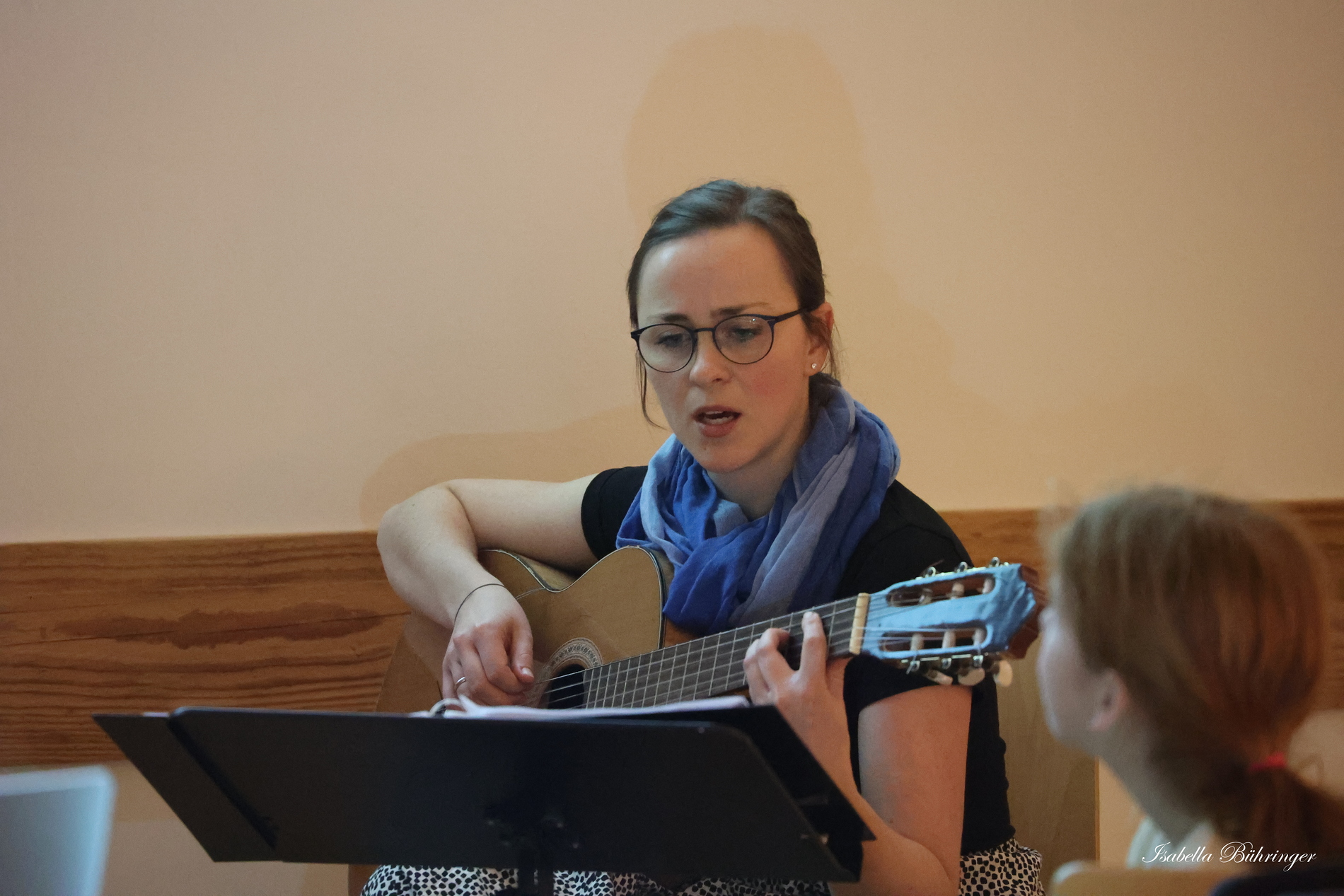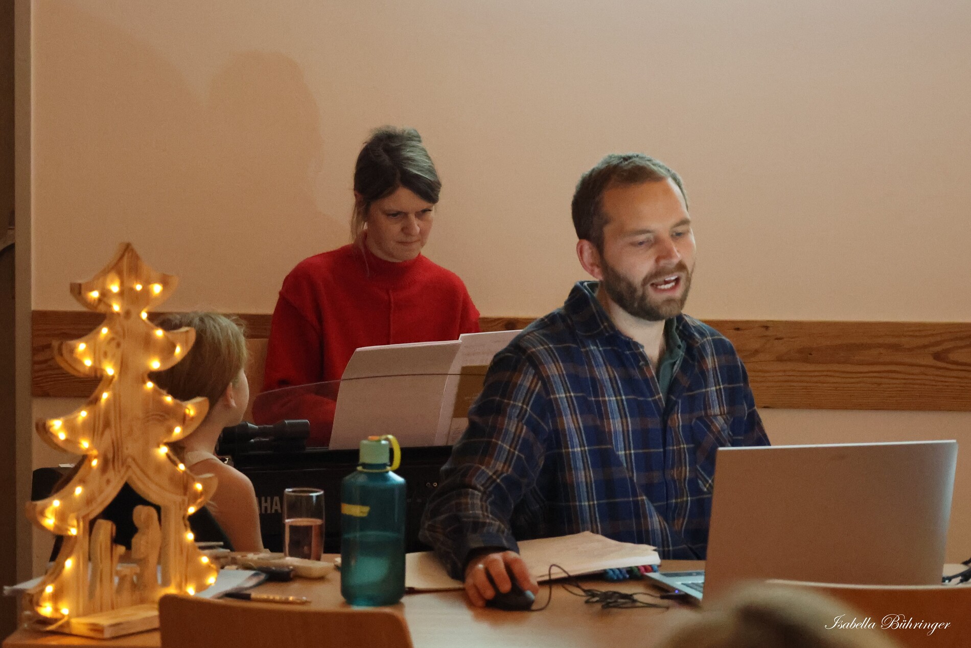 Mit Gitarre, Klavier und Harfe im Schlepptau wurde zwei Stunden lang musiziert und gesungen. Neben bekannten traditionellen Liedern war auch für manche Neues dabei.