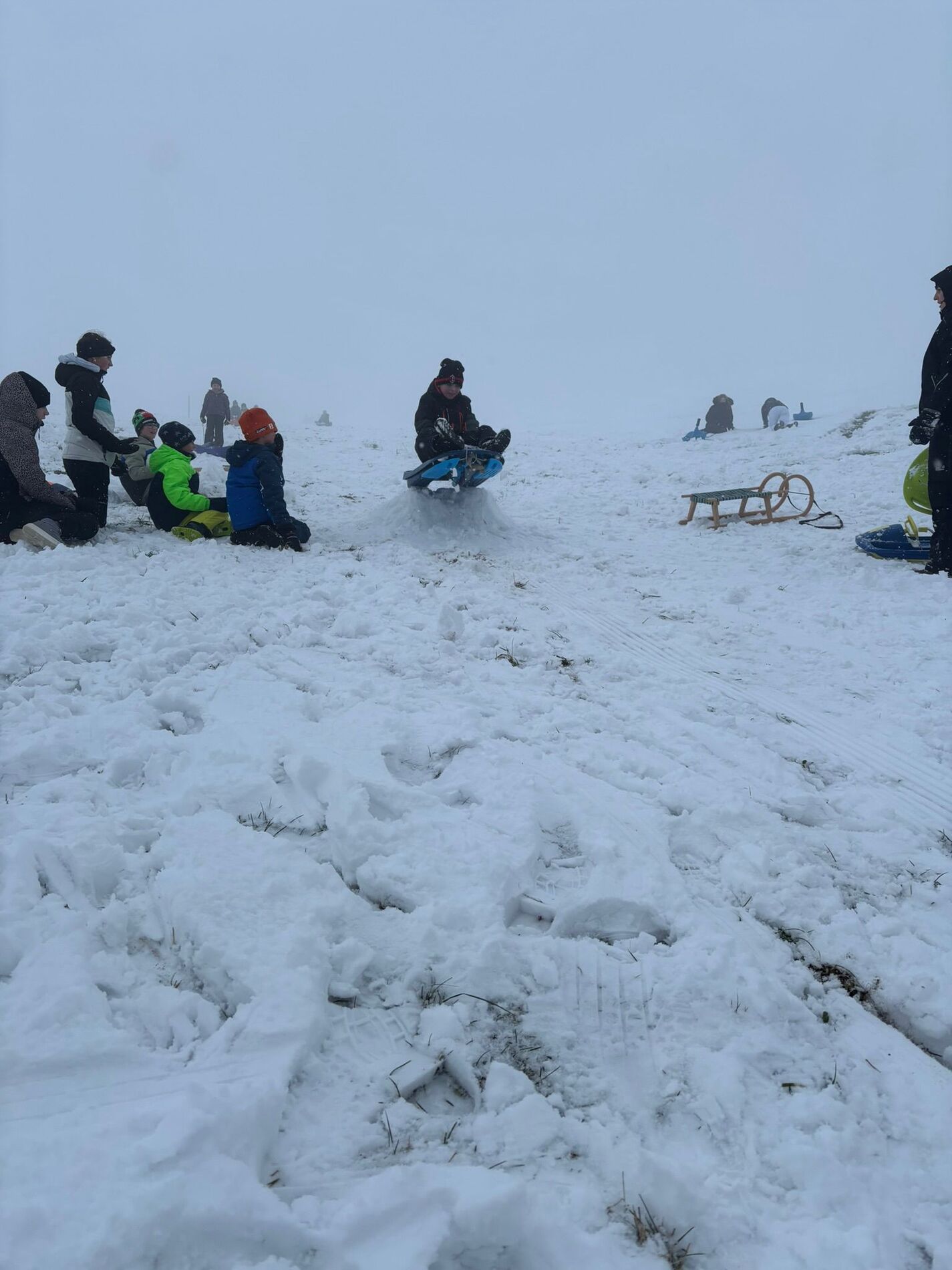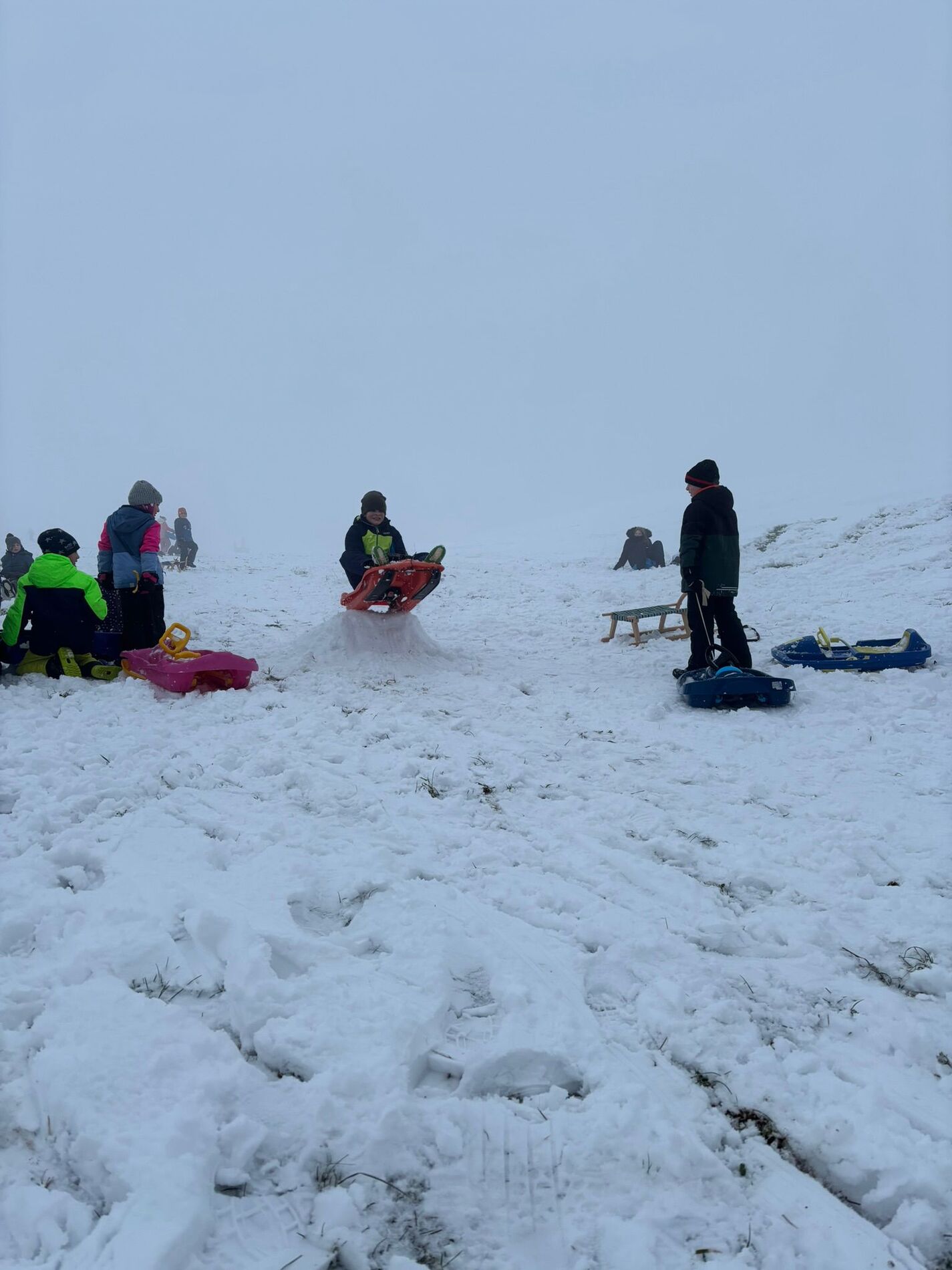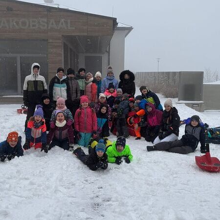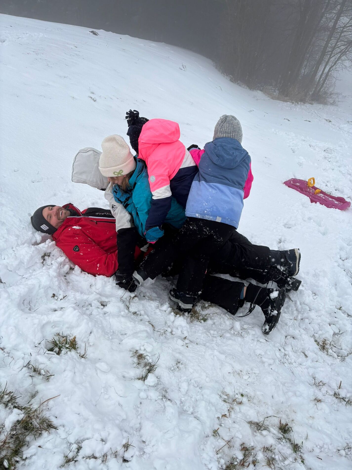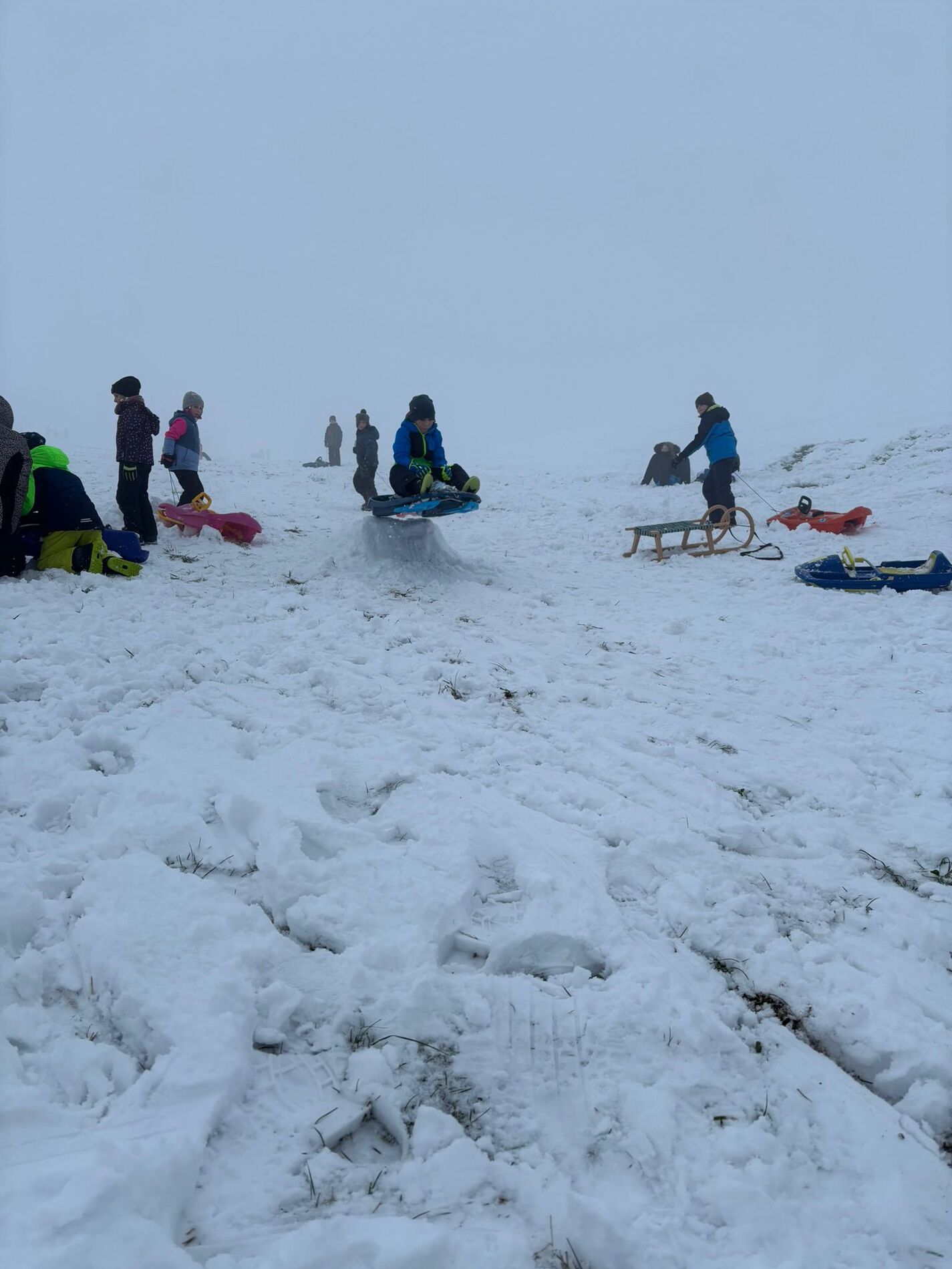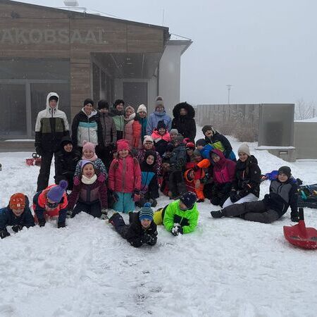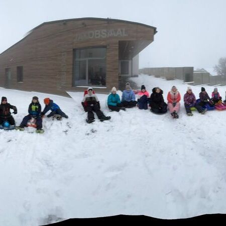 In der 1. Ministunde des neuen Jahres rückten wir aus und sprangen über Schanzen, machten Schneeballschlachten und hatten eine megamäßige Gaudi im Schnee. Nach der Zeit draußen, wurden wir mit Tee und viel Kuchen im warmen Jakobsaal verwöhnt.