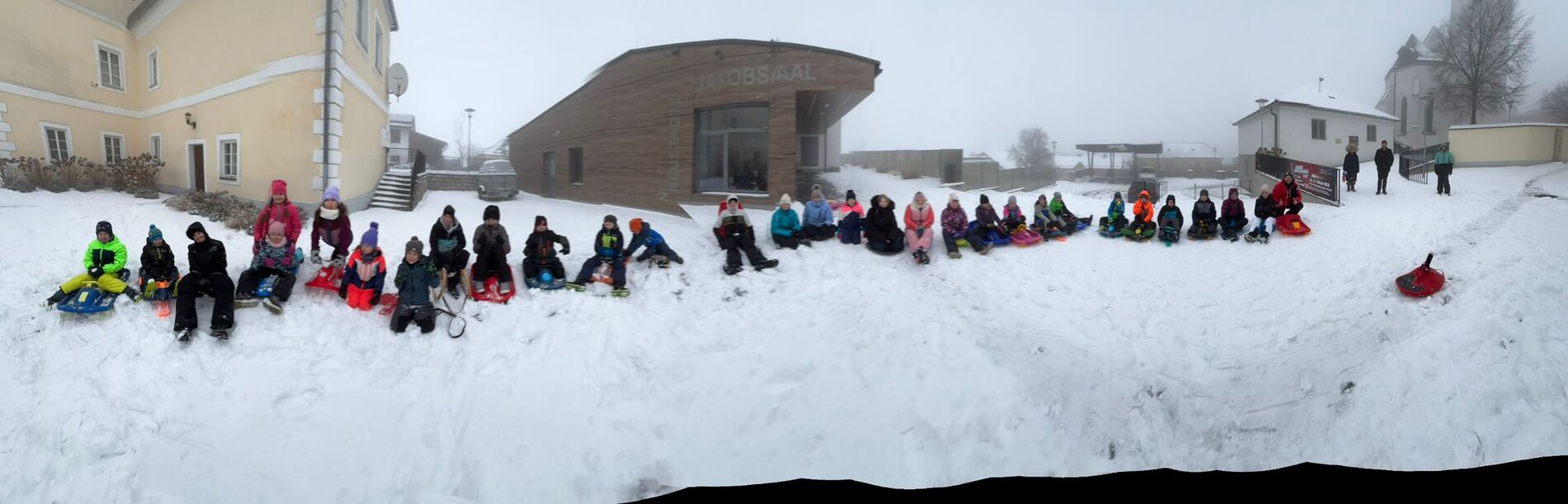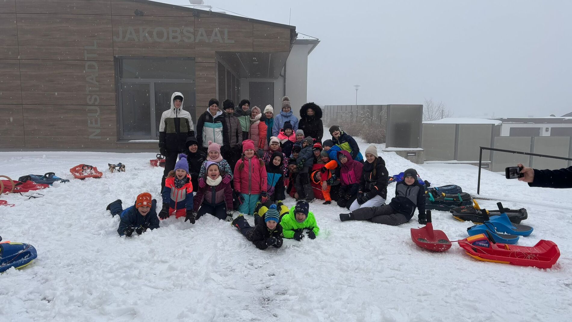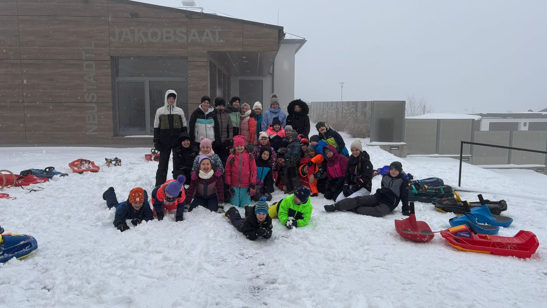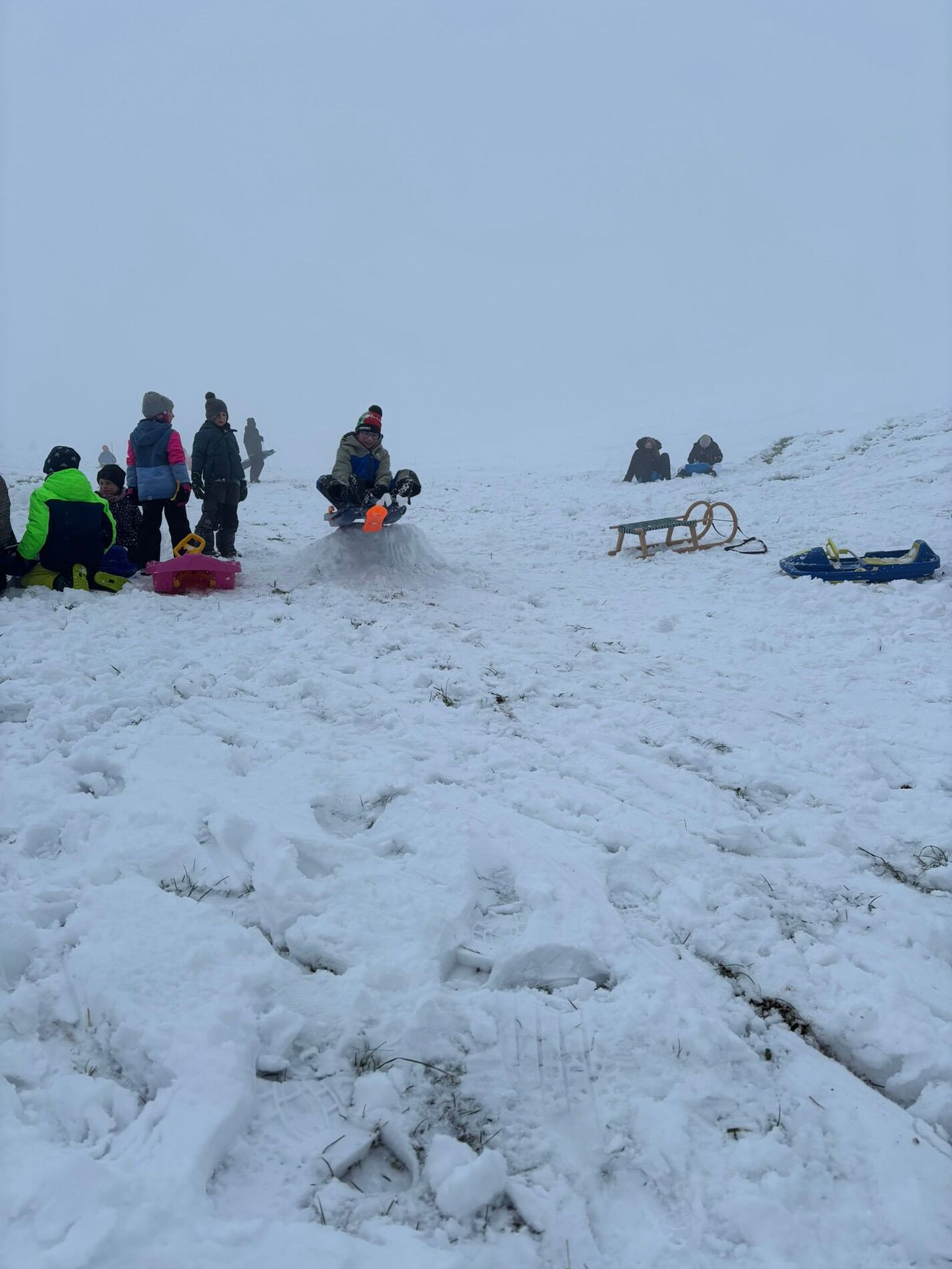 In der 1. Ministunde des neuen Jahres rückten wir aus und sprangen über Schanzen, machten Schneeballschlachten und hatten eine megamäßige Gaudi im Schnee. Nach der Zeit draußen, wurden wir mit Tee und viel Kuchen im warmen Jakobsaal verwöhnt.
