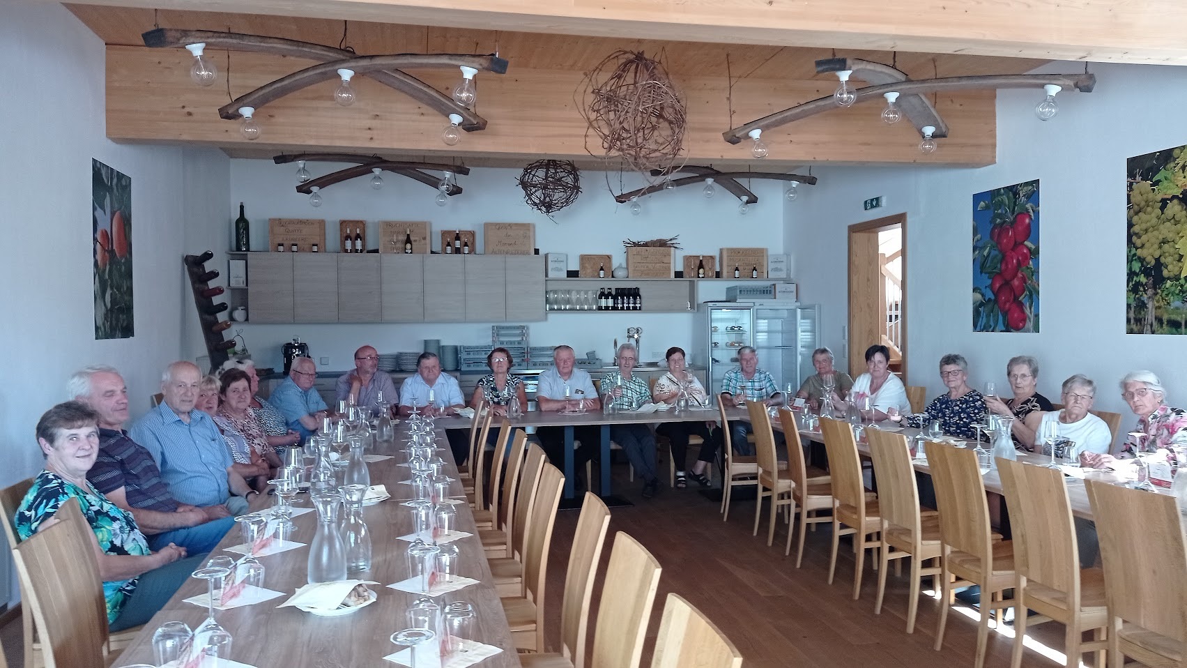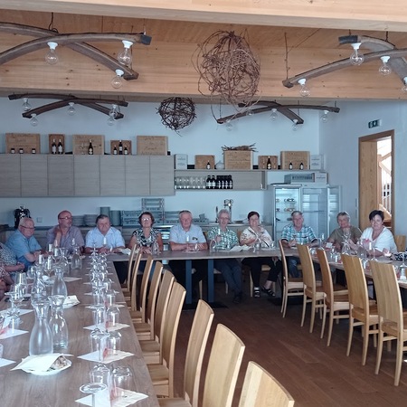 Anschließend, bei der Führung durch den im Jahr 2018 neu errichteten und eröffneten Betriebsstandort der Fam. Altenriederer wurden wir über den Ablauf der Ernte, Produktion, Verarbeitung und Vermarktung informiert. Der Betrieb ist mit modernster Technik ausgestattet und produziert Obstsäfte und Weine von höchster Qualität.
