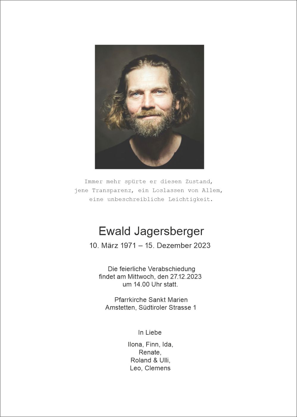 Ewald Jagersberger, verst. 15.12.2023 im 53. Lebensjahr - Parte