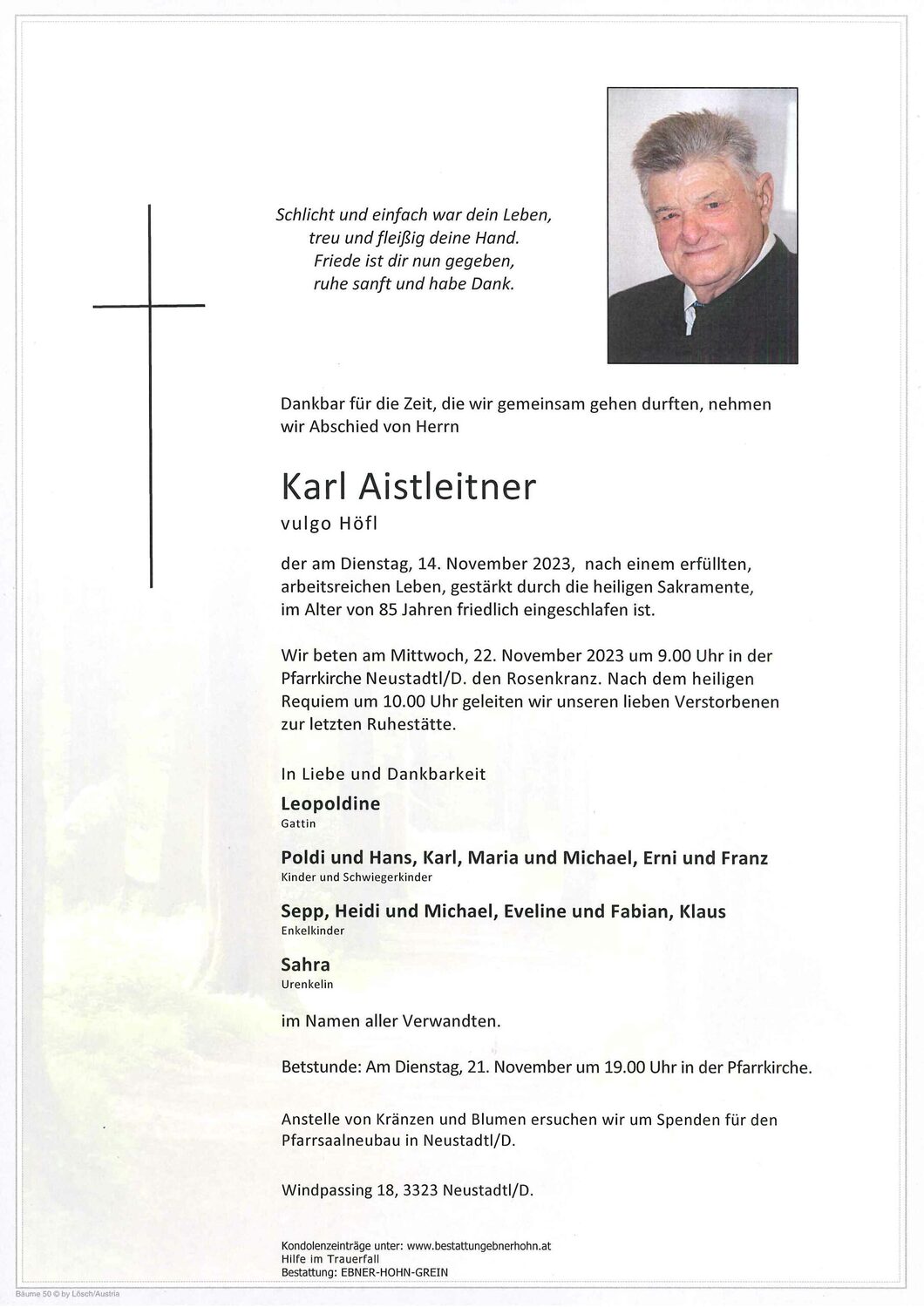 Karl Aistleitner, verst. 14.11.2023 im 85. Lebensjahr - Parte