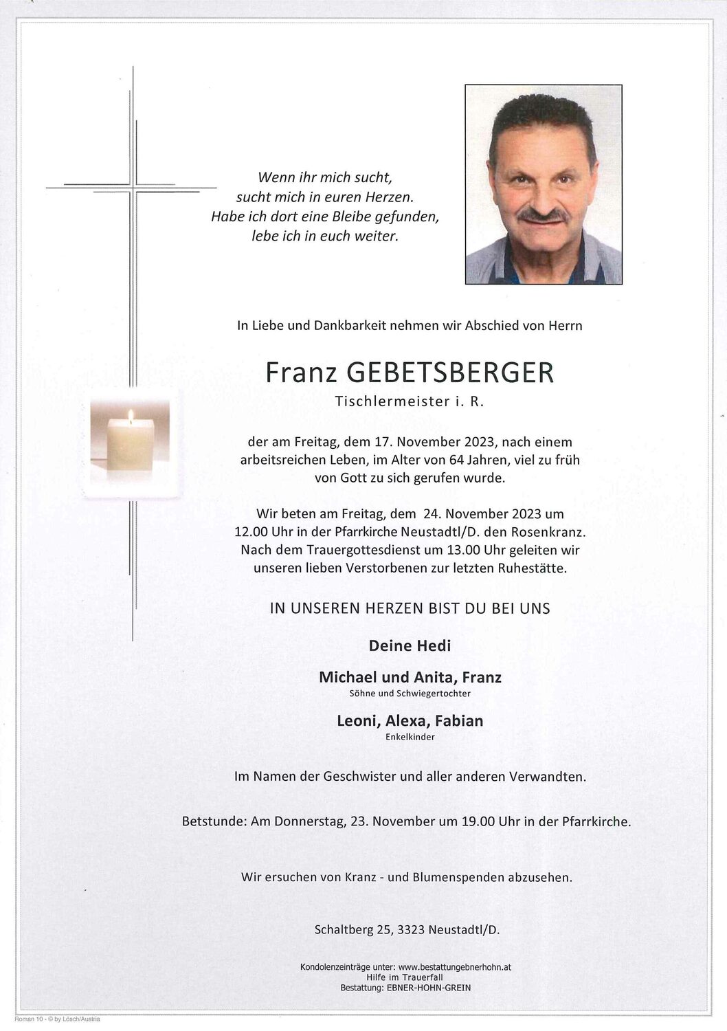 Franz Gebetsberger, verst. 17.11.2023 im 65. Lebensjahr - Parte