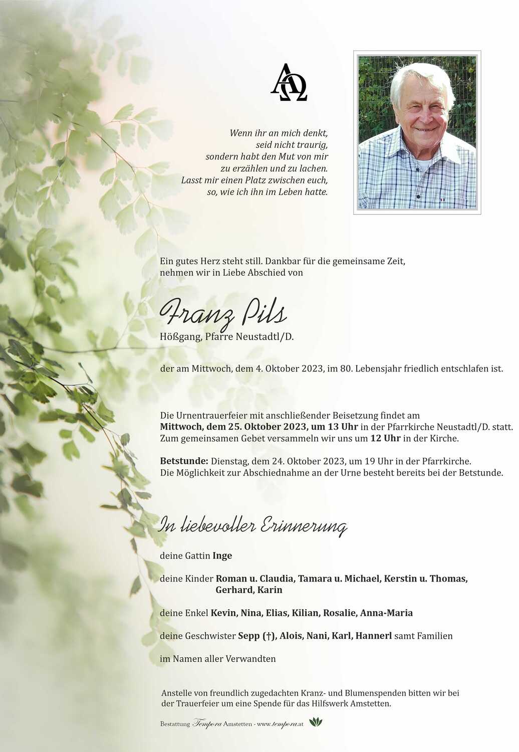 Franz Pils, verst. 04.10.2023 im 80. Lebensjahr - Parte