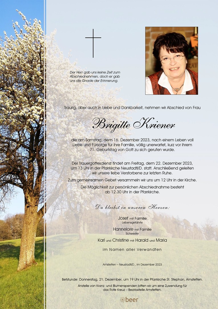 Brigitte Kriener, verst. 16.12.2023 im 71. Lebensjahr - Parte