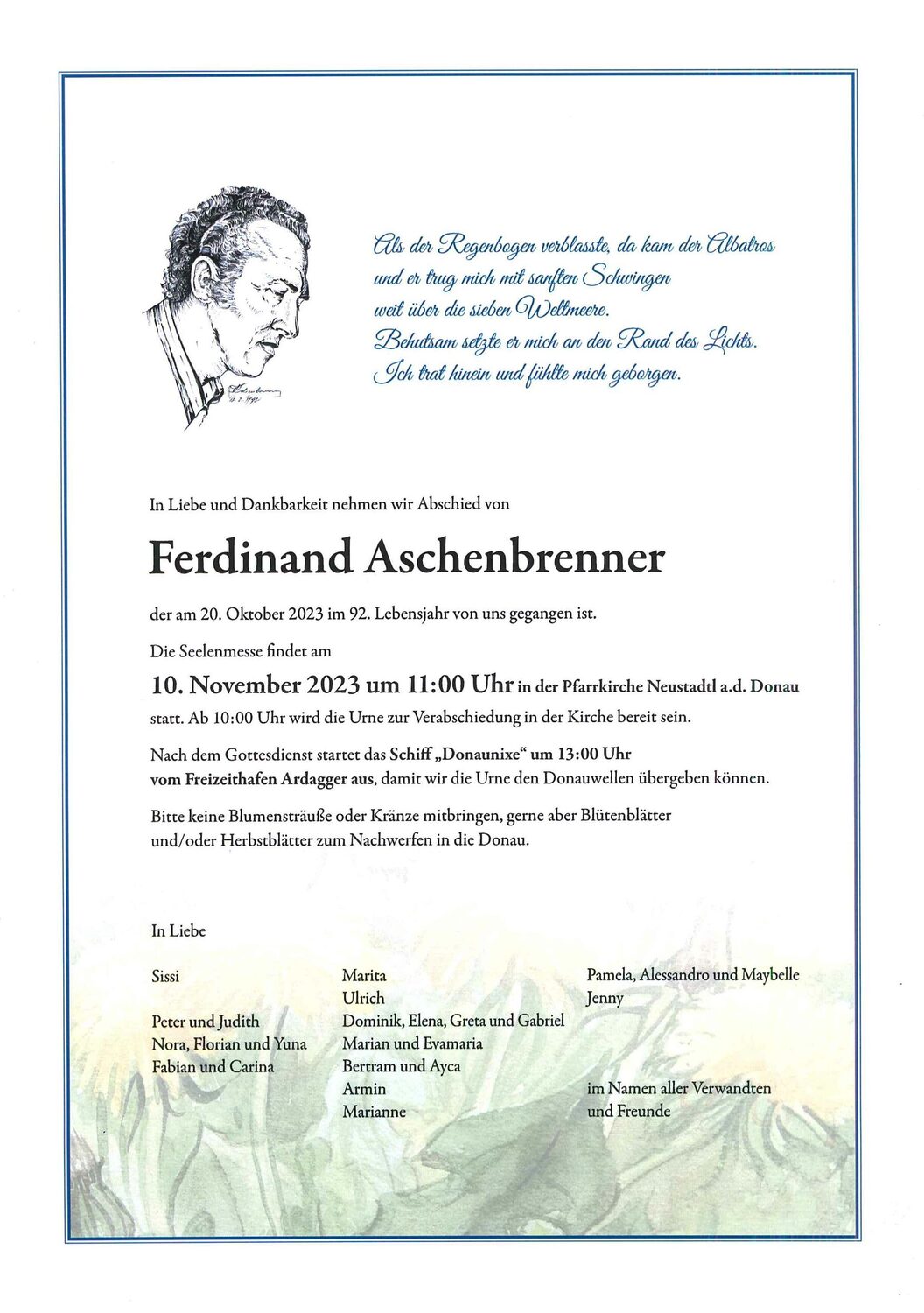 Ferdinand Aschenbrenner, verst. 20.10.2023 im 92. Lebensjahr - Parte