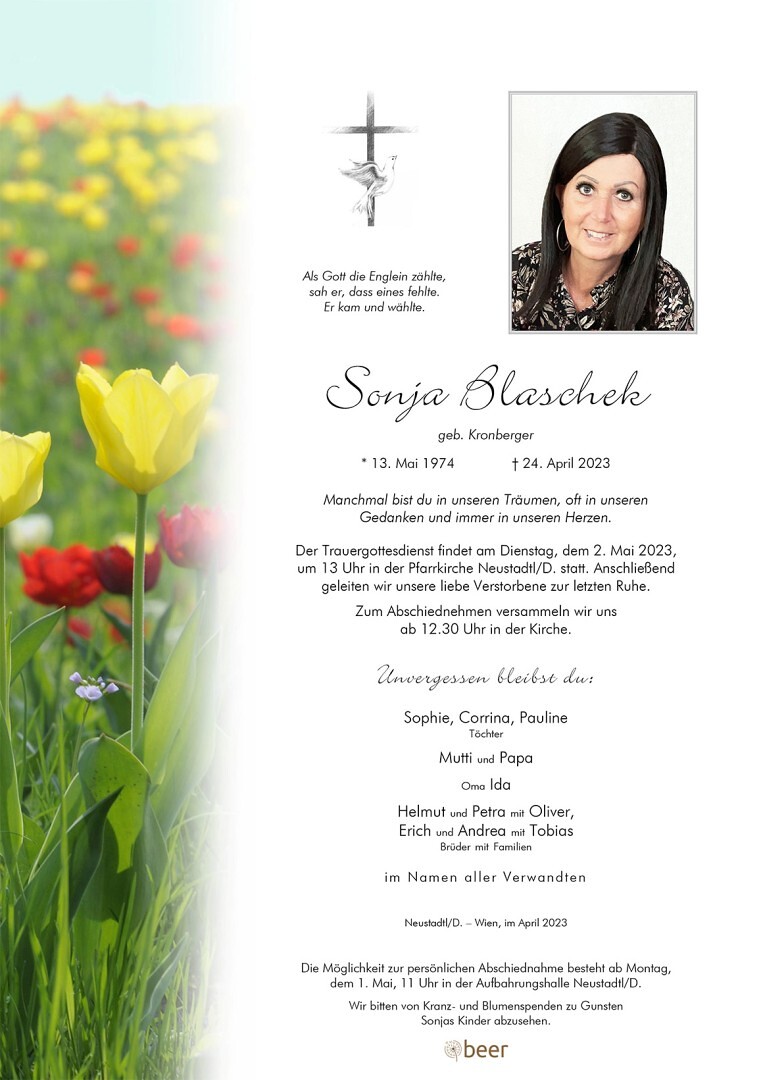 Sonja Blaschek, verst. 24.04.2023 im 49. Lebensjahr - Parte