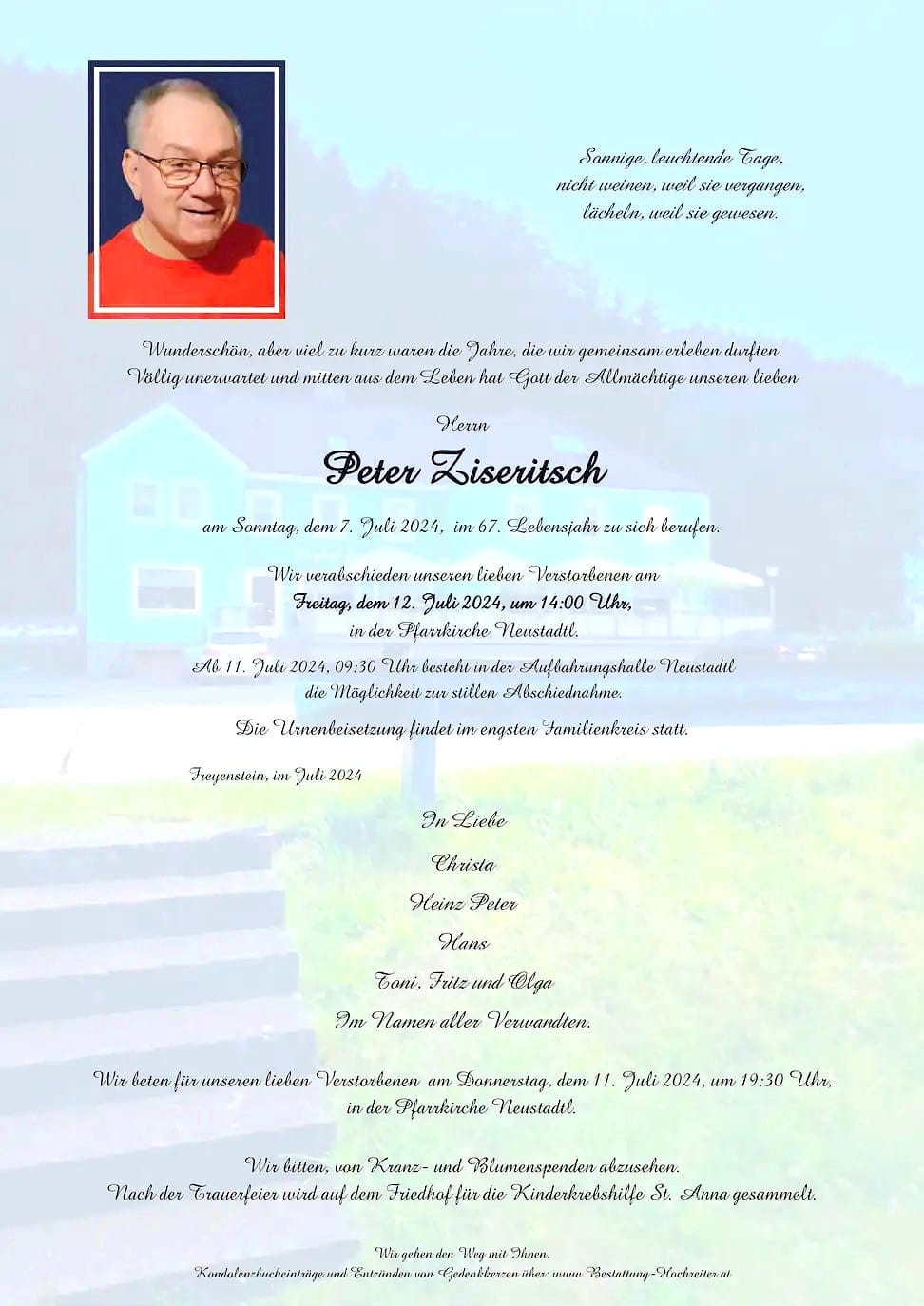 Peter Ziseritsch, verst. 07.07.2024 im 67. Lebensjahr - Parte