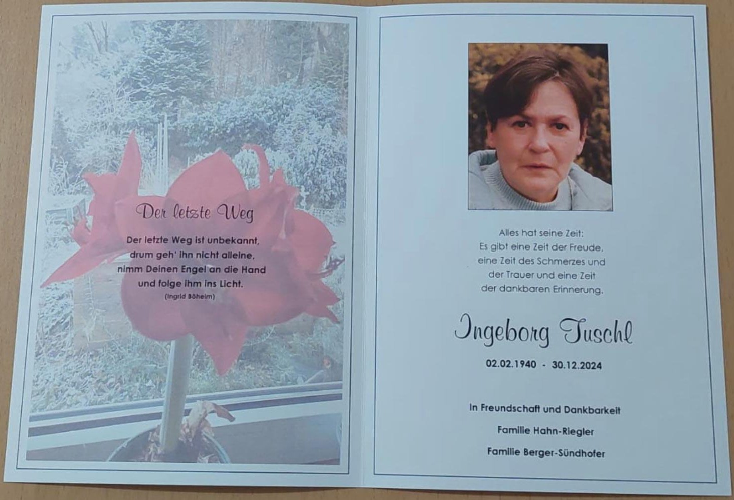 Ingeborg Tuschl, verst. 30.12.2024 im 85. Lebensjahr - Parte