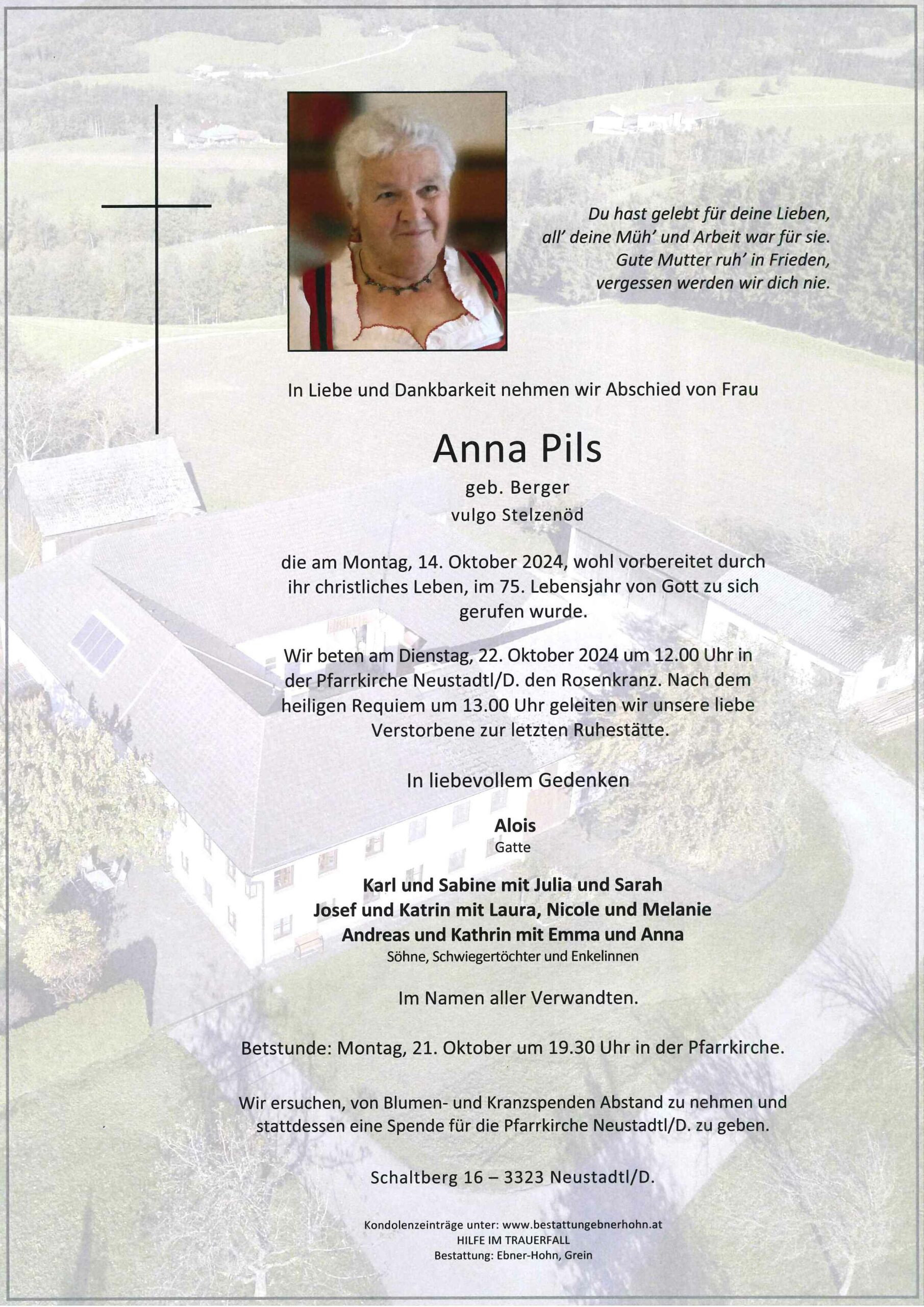 Anna Pils, verst. 14.10.2024 im 75. Lebensjahr - Parte