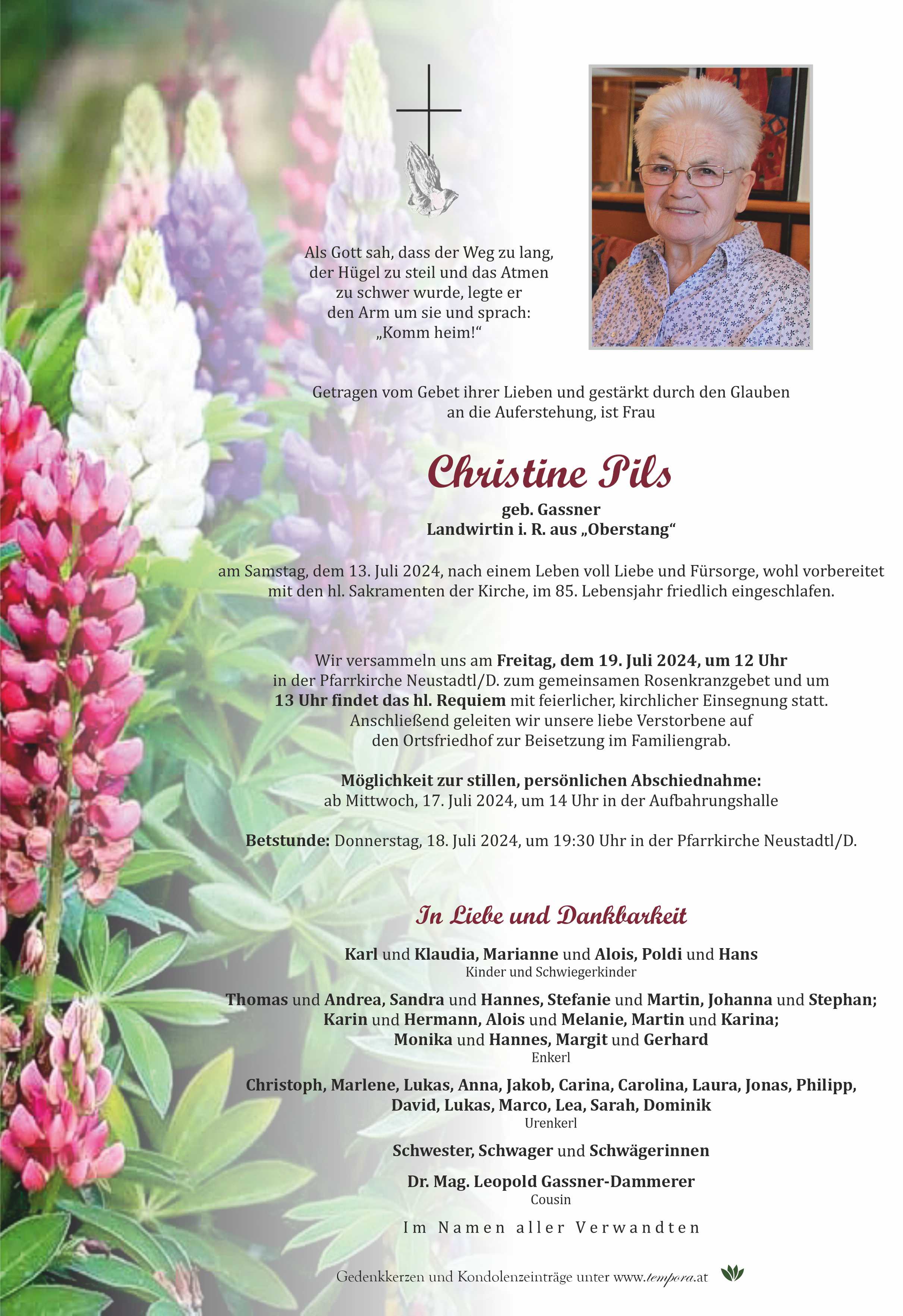 Christine Pils, verst. 13.07.2024 im 85. Lebensjahr - Parte