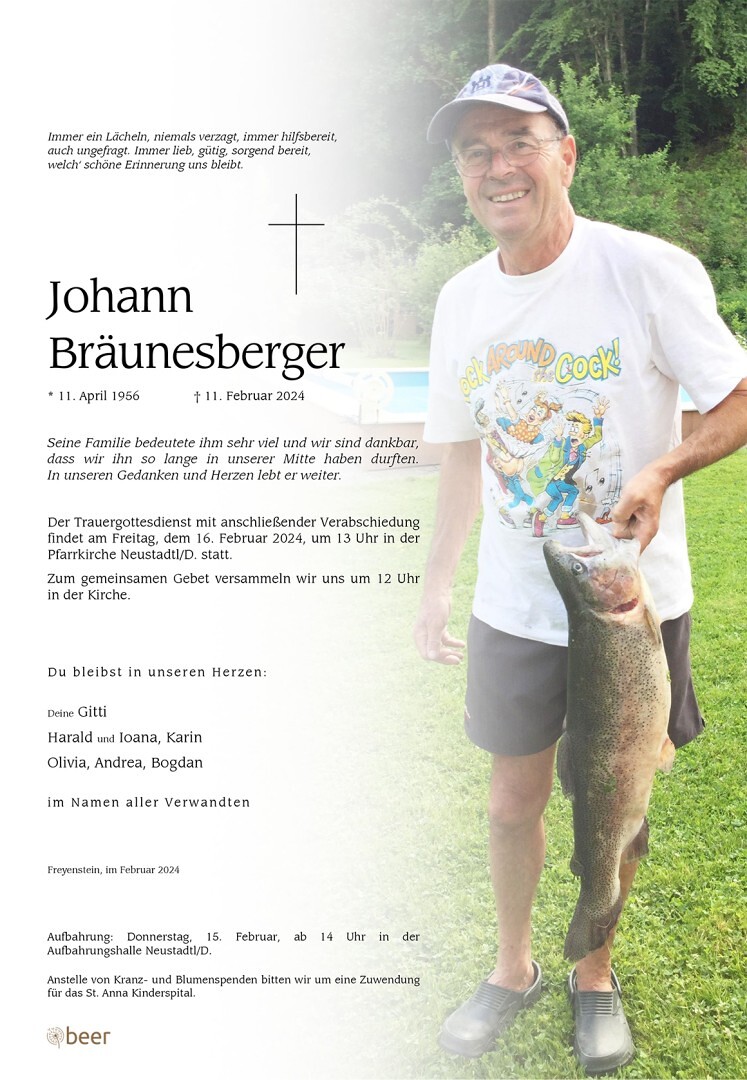 Johann Bräunesberger, verst. 11.02.2024 im 68. Lebensjahr - Parte