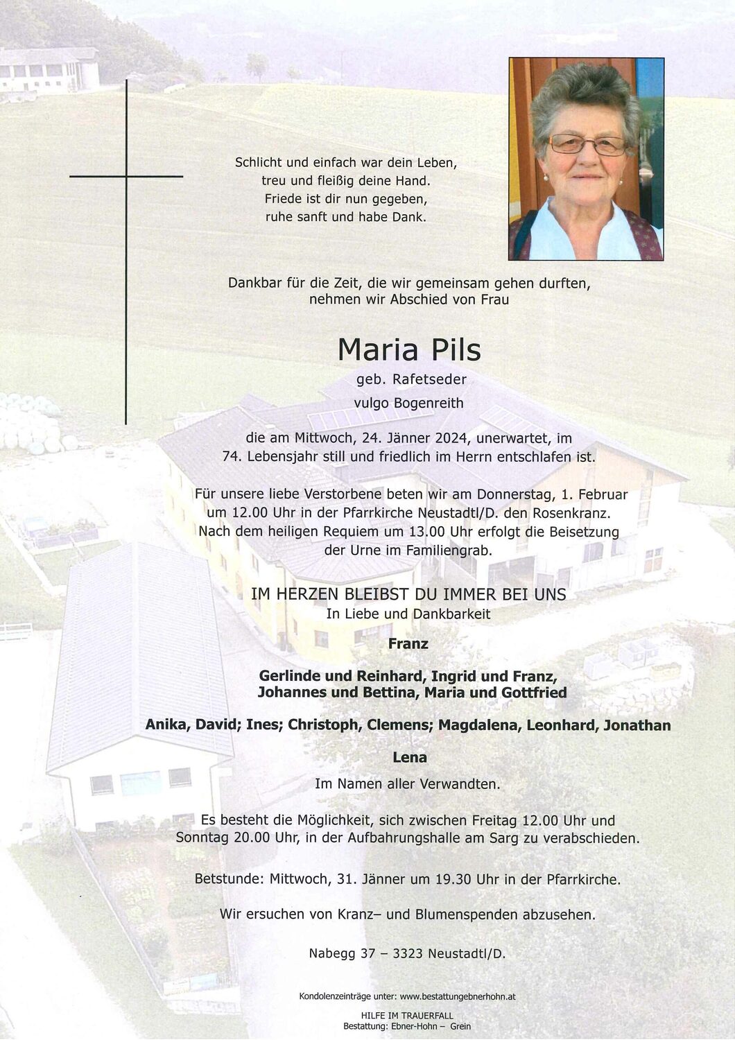 Maria Pils, verst. 24.01.2024 im 74. Lebensjahr - Parte