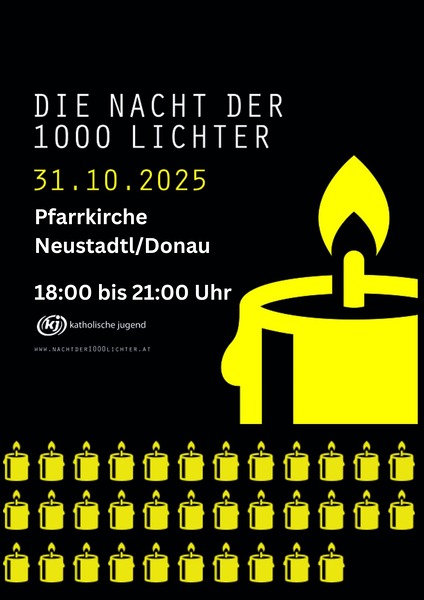 Die Nacht der 1000 Lichter Pfarrkirche Neustadtl an der Donau Herzliche Einladung zur Nacht der 1000 Lichter in der Pfarrkirche Neustadtl an der Donau am 31.10.2025 von 18:00 Uhr bis 21:00 Uhr. mehr: Pfarrkirche Neustadtl an der Donau