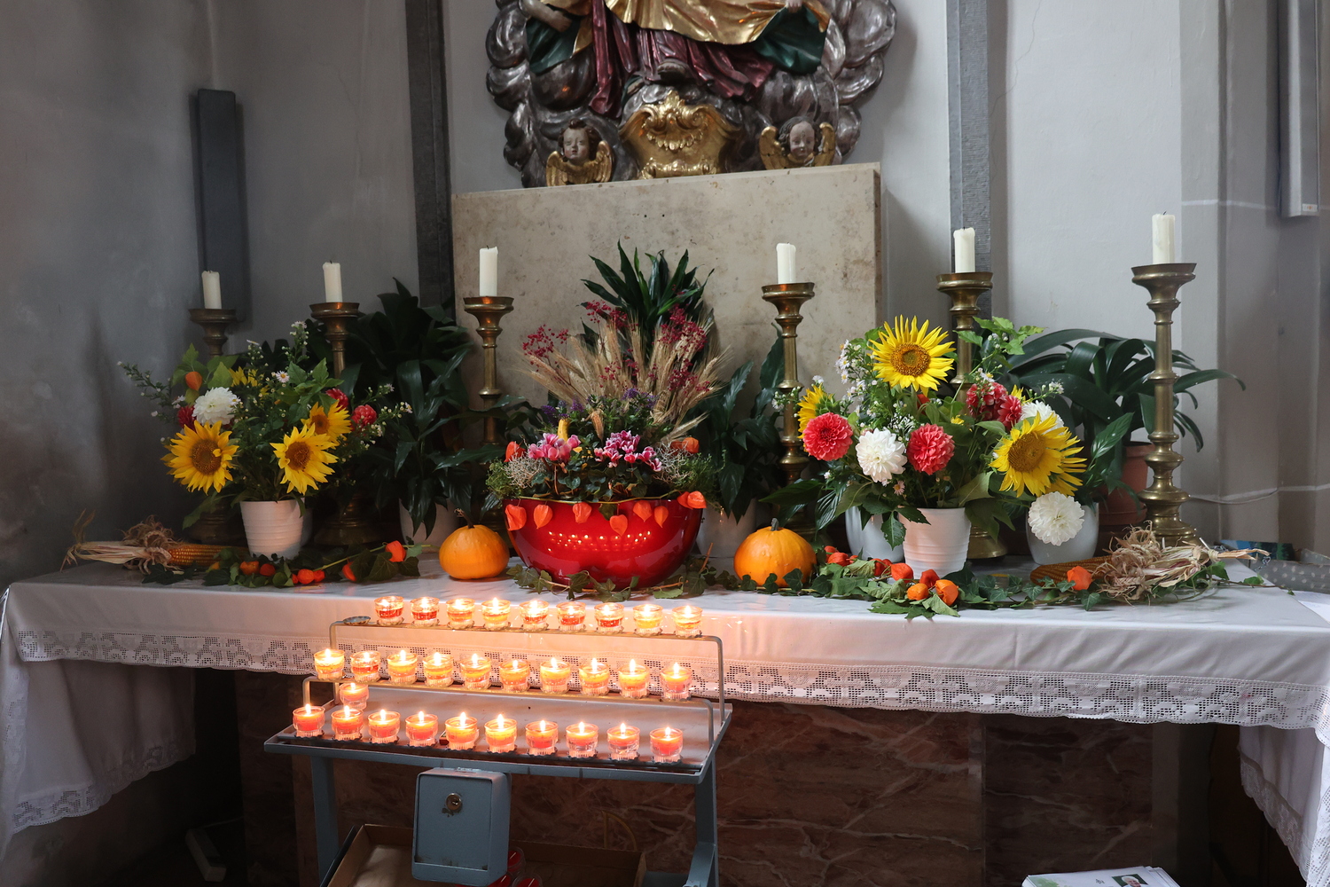 dass unsere Kirche stets wunderschön mit Blumen geschmückt und auch bei besonderen kirchlichen Festen passend dekoriert ist.